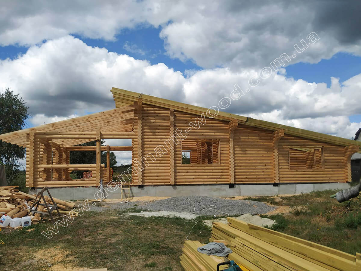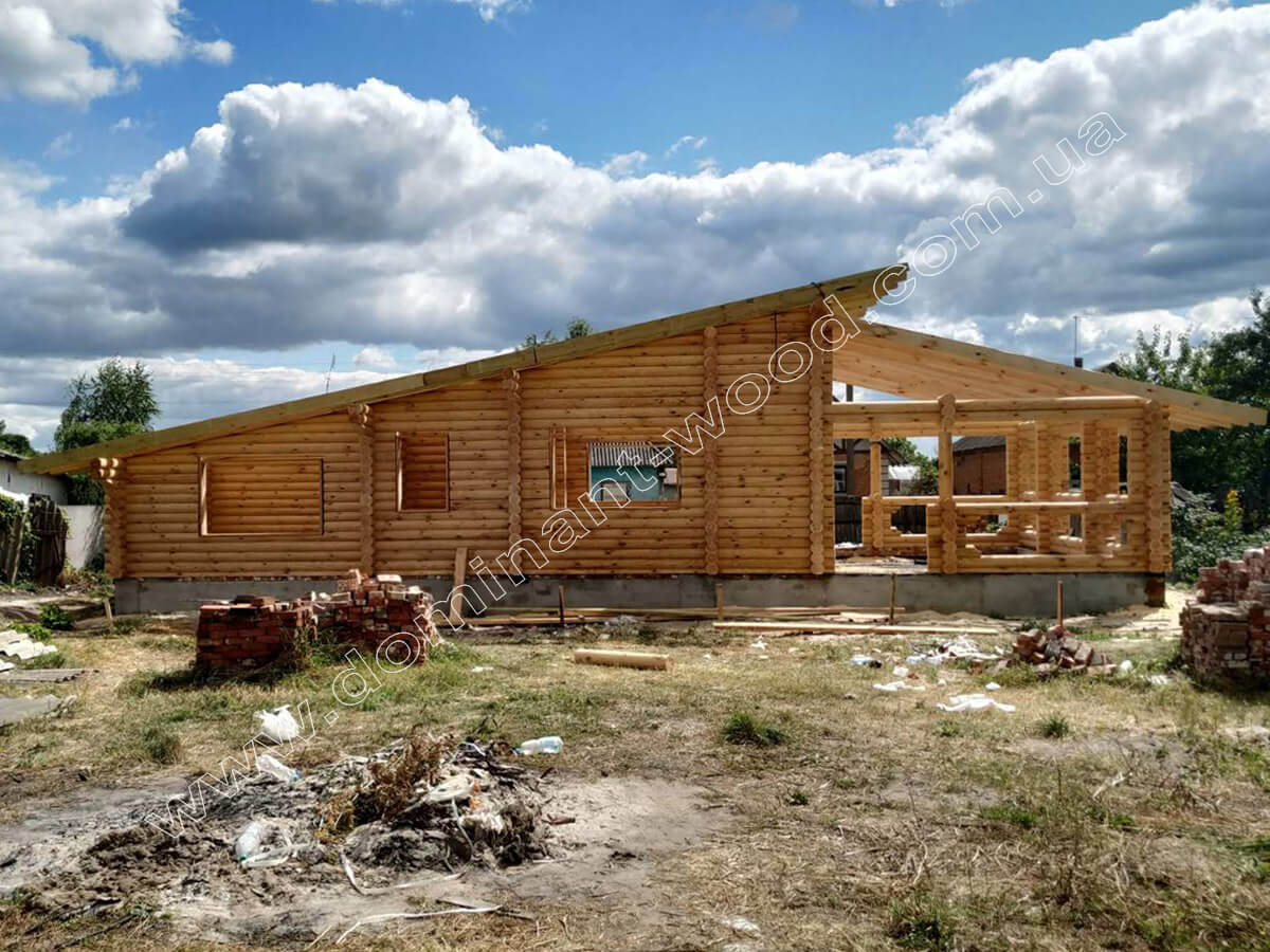 Проект бревенчатого дома с двумя спальнями «Жакона2» относится к самым популярным среди наших клиентов. Много раз мы возводили этот деревянный дом из сухого, профилированного бруса в исполнении модели «Жакона». В этот раз показываем нашу работу по проекту «Жакона2» из оцилиндрованных бревен Ø 180 мм. Коттедж недавно был построен в селе Битица, Сумской области. Возводили мы его в базовой комплектации, то есть строили деревянный корпус дома с каркасом крыши. Фундамент под постройку был предварительно подготовлен заказчиком. Подробности далее.