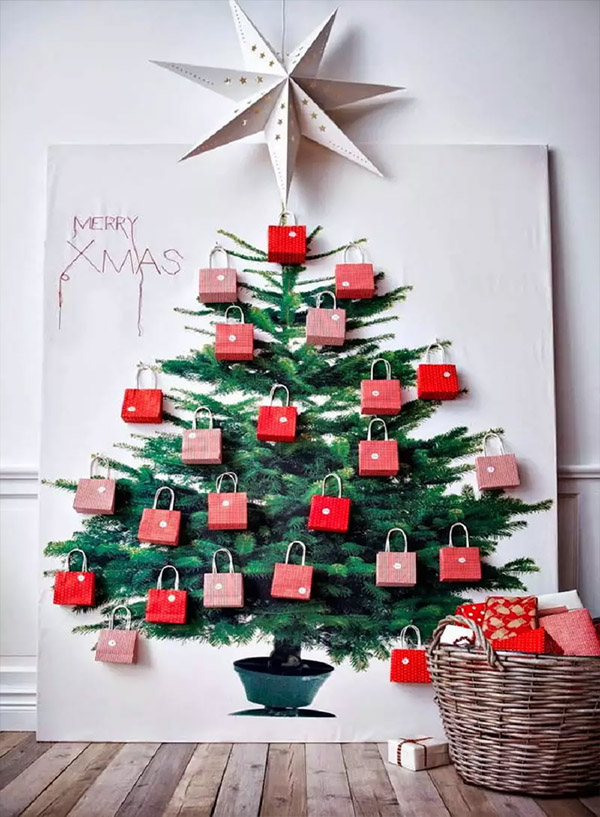 Альтернативная ель. Невероятно стильно будут смотреться инсталляции новогодних елочек, созданных своими руками. Это могут быть настенные елки из цветного скотча, гирлянды, веточек, шаров или креативных стикеров. Елка-полка или проволочная елка из перьев белоснежного цвета – это просто писк моды! Фантазируя на тему создания креативной елочки, вы можете воплотить свою детскую мечту. Например, сделать елочку из конфет и шоколадок, или выложить ее из книг.