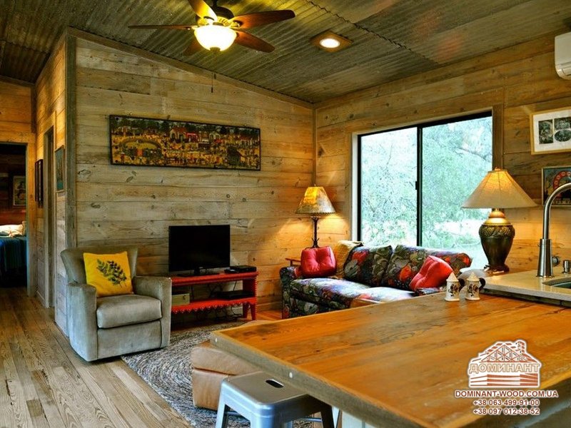 Не каждый владелец коттеджа может похвастаться наличием деревянных балок на потолке. Но если в вашем доме такие имеются, то можно только обновить внешний вид дерева при помощи лака и покрасить стены в светлый цвет. Такие оттенки увеличат пространство, а балки сделают интерьер более оригинальным. Не стоит забывать и про другие деревянные элементы, которые дополнительно украсят помещение.