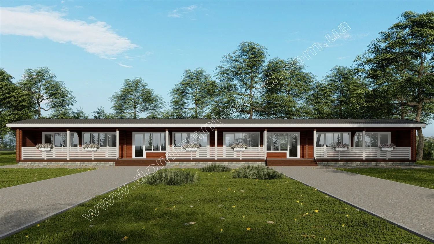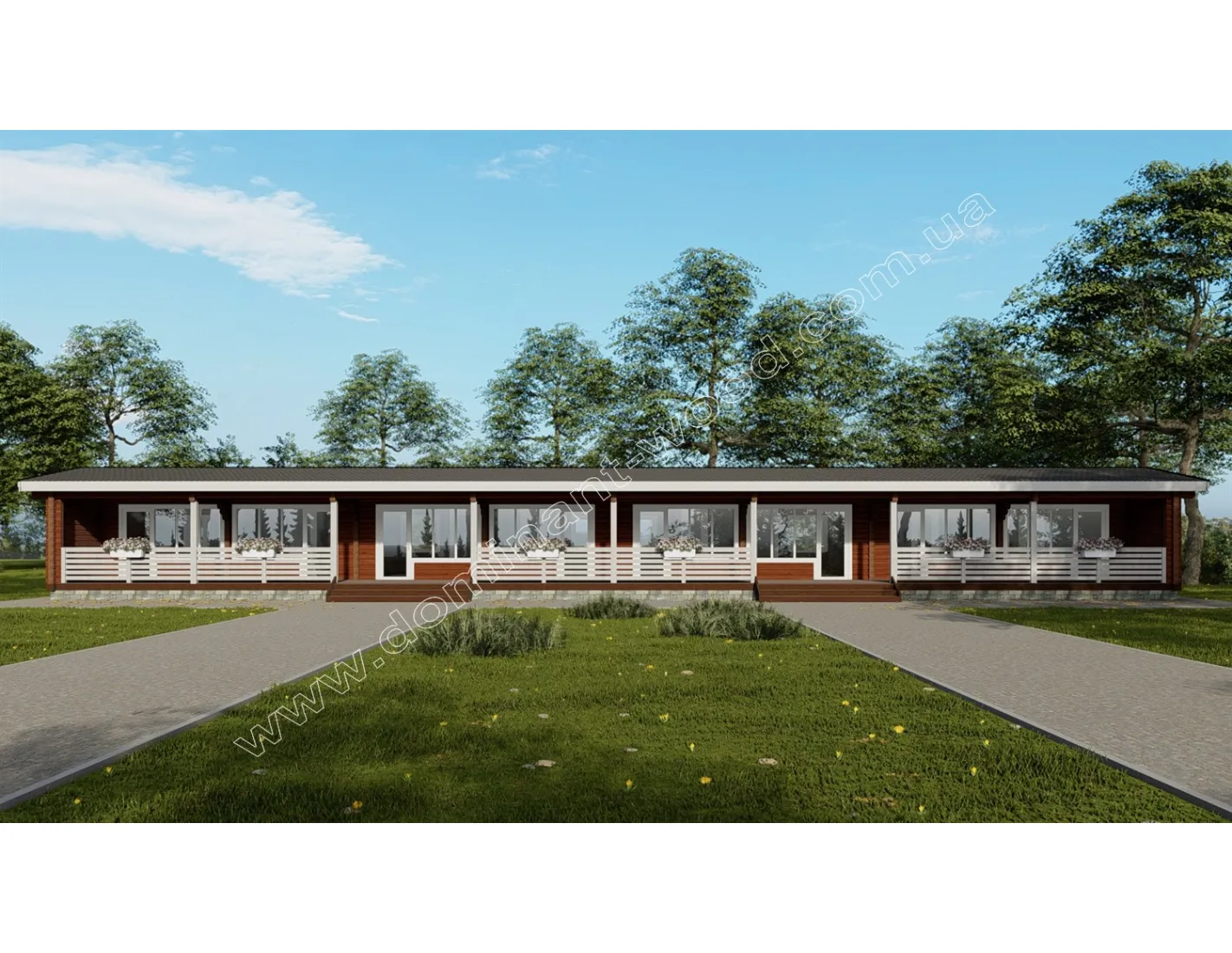 Проект «Идиллия» - отель на восемь номеров для строительства на базе отдыха. Гостиница выполняется в виде смежных деревянных домиков из бруса, которые обладают рядом преимуществ и привлекательных особенностей. Проживая либо отдыхая в помещениях из натуральных деревянных стен, внутри которых создается благоприятный климат, можно значительно улучшить здоровье. Дерево, как дышащий материал, наполняет помещения кислородом, восстанавливает силы и повышает настроение. Именно поэтому проект «Идиллия» из сухого профилированного бруса сосны является идеальным вариантом для построек в гостиничных комплексах и базах отдыха.
