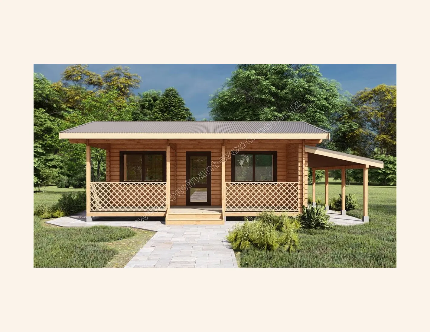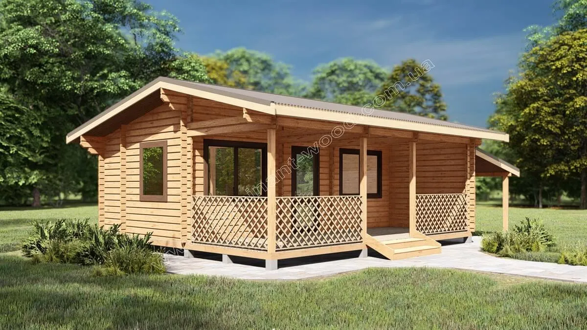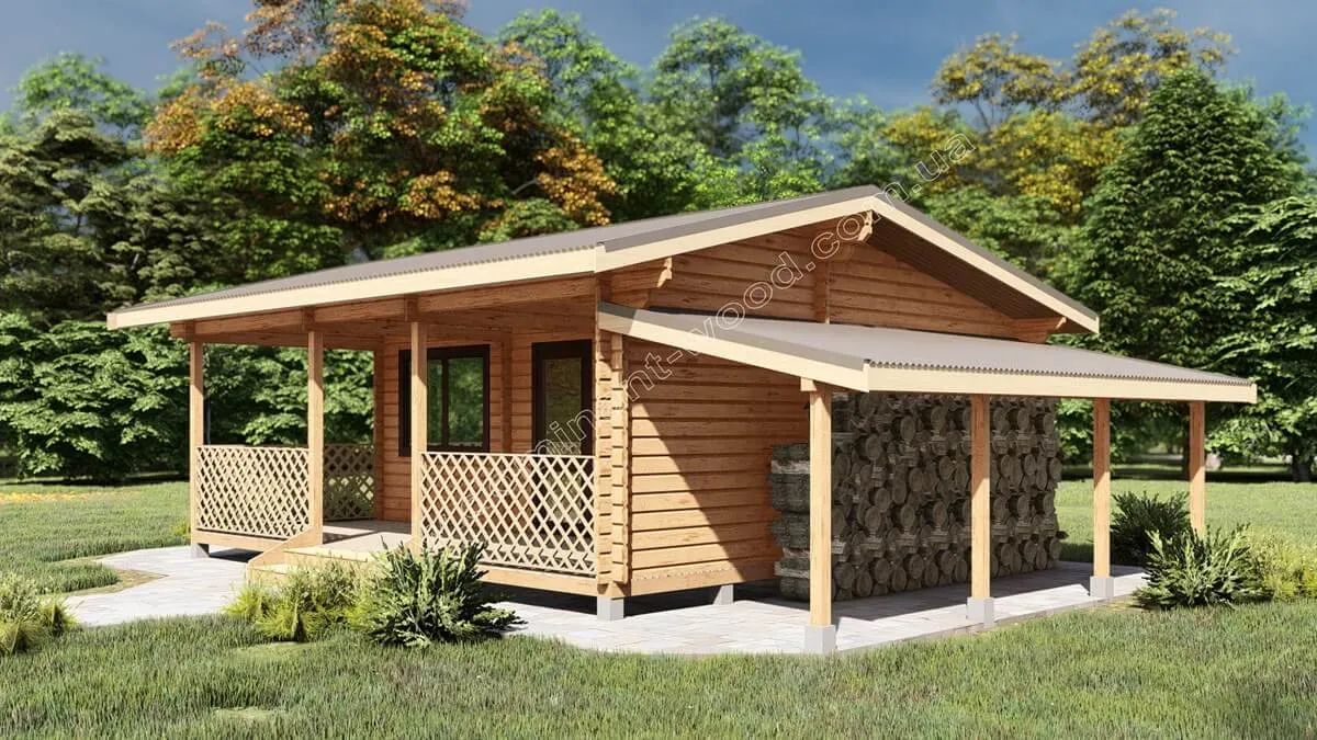 Проектом «Ривай» размером 6 на 9 метров предлагается просторная комната с террасой и навесом, которые предназначены для обустройства уютного уголка на садовом участке. Это очень функциональное сооружение, открывающее множество возможностей для отдыха на природе. Проект «Ривай» включает в себя закрытое помещение, летнюю террасу и навес-дровник. Такой домик может рассматриваться в качестве летней кухни, садового или дачного домика, гостевого домика. Материал исполнения проекта – сухой, профилированный брус 60*150 мм. Благодаря такой технологии домик смотрится красиво и аккуратно. Для сезонной постройки тонкого размера бруса достаточно, и нет целесообразности удорожать строение за счет утолщения или утепления стен. Здесь можно готовить барбекю и закрывать консервацию, наслаждаться свежим воздухом и солнечными лучами, организовывать обеды или ужины, избегая захламления жилья. Или можно рассматривать проект «Ривай» в качестве коммерческого объекта благодаря просторной и очень удобной планировке.