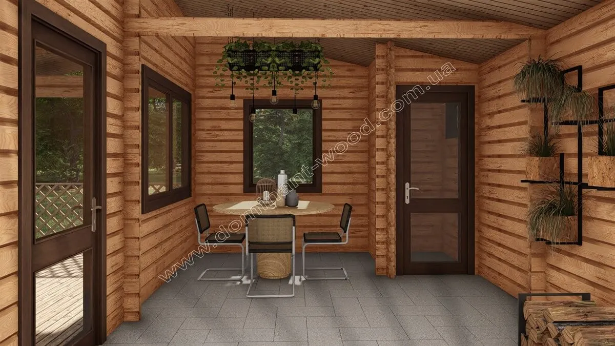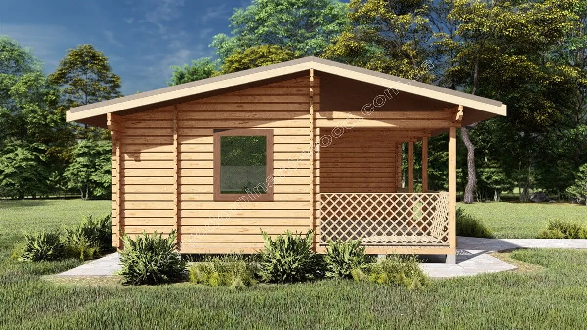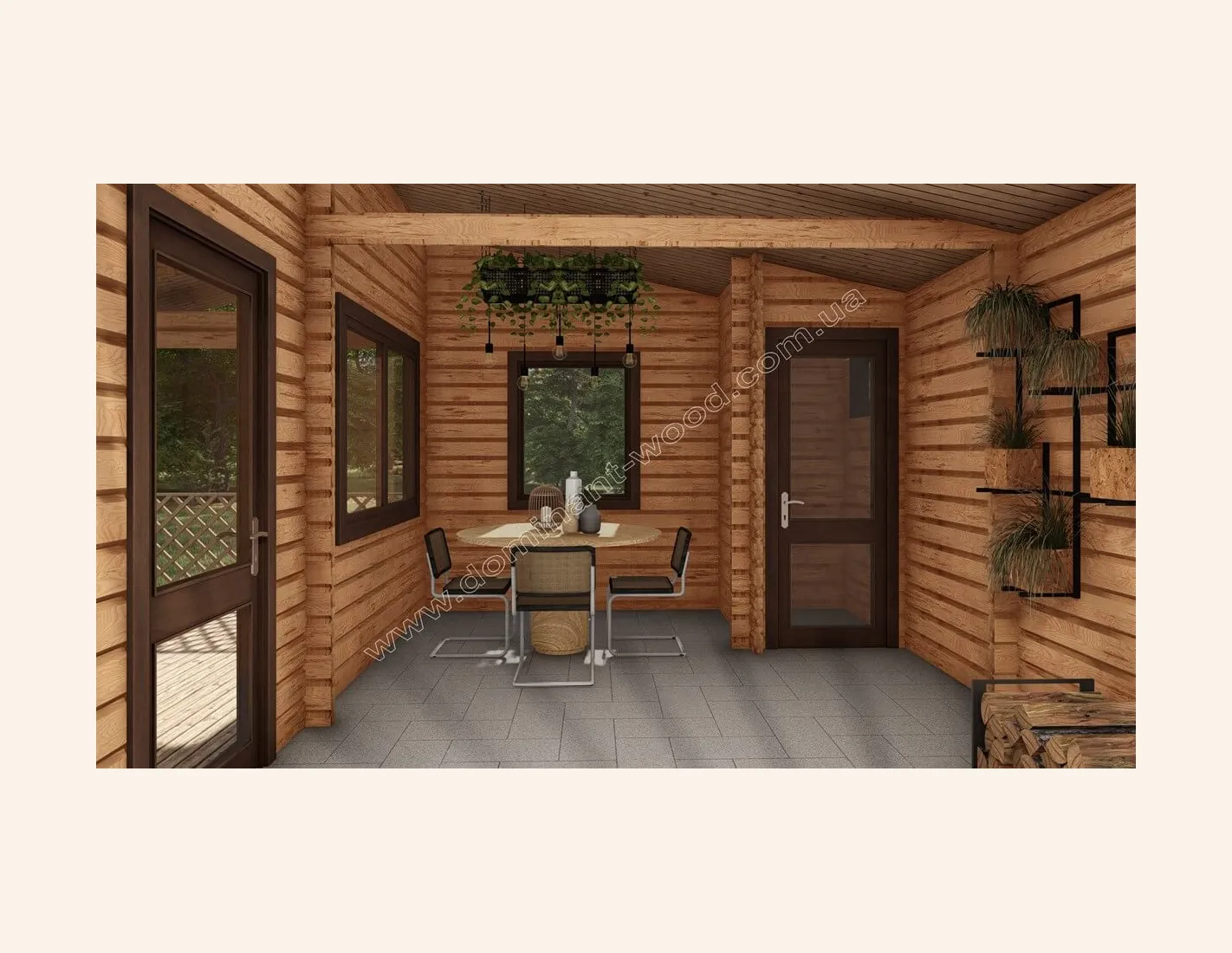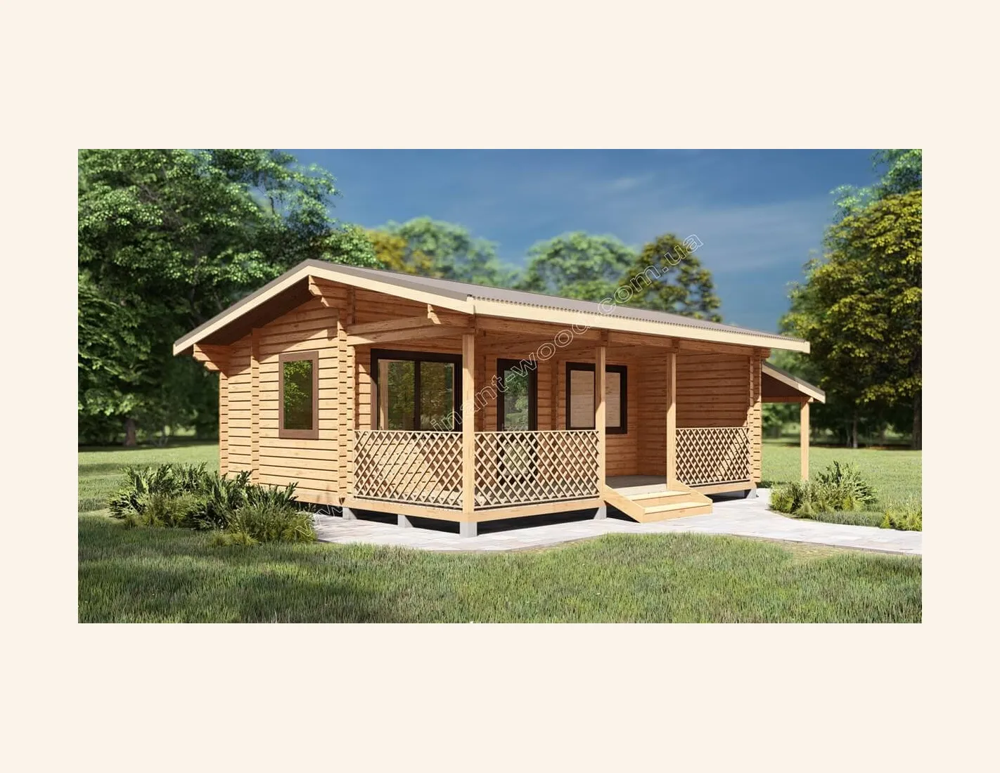 Проектом «Ривай» размером 6 на 9 метров предлагается просторная комната с террасой и навесом, которые предназначены для обустройства уютного уголка на садовом участке. Это очень функциональное сооружение, открывающее множество возможностей для отдыха на природе. Проект «Ривай» включает в себя закрытое помещение, летнюю террасу и навес-дровник. Такой домик может рассматриваться в качестве летней кухни, садового или дачного домика, гостевого домика. Материал исполнения проекта – сухой, профилированный брус 60*150 мм. Благодаря такой технологии домик смотрится красиво и аккуратно. Для сезонной постройки тонкого размера бруса достаточно, и нет целесообразности удорожать строение за счет утолщения или утепления стен. Здесь можно готовить барбекю и закрывать консервацию, наслаждаться свежим воздухом и солнечными лучами, организовывать обеды или ужины, избегая захламления жилья. Или можно рассматривать проект «Ривай» в качестве коммерческого объекта благодаря просторной и очень удобной планировке.