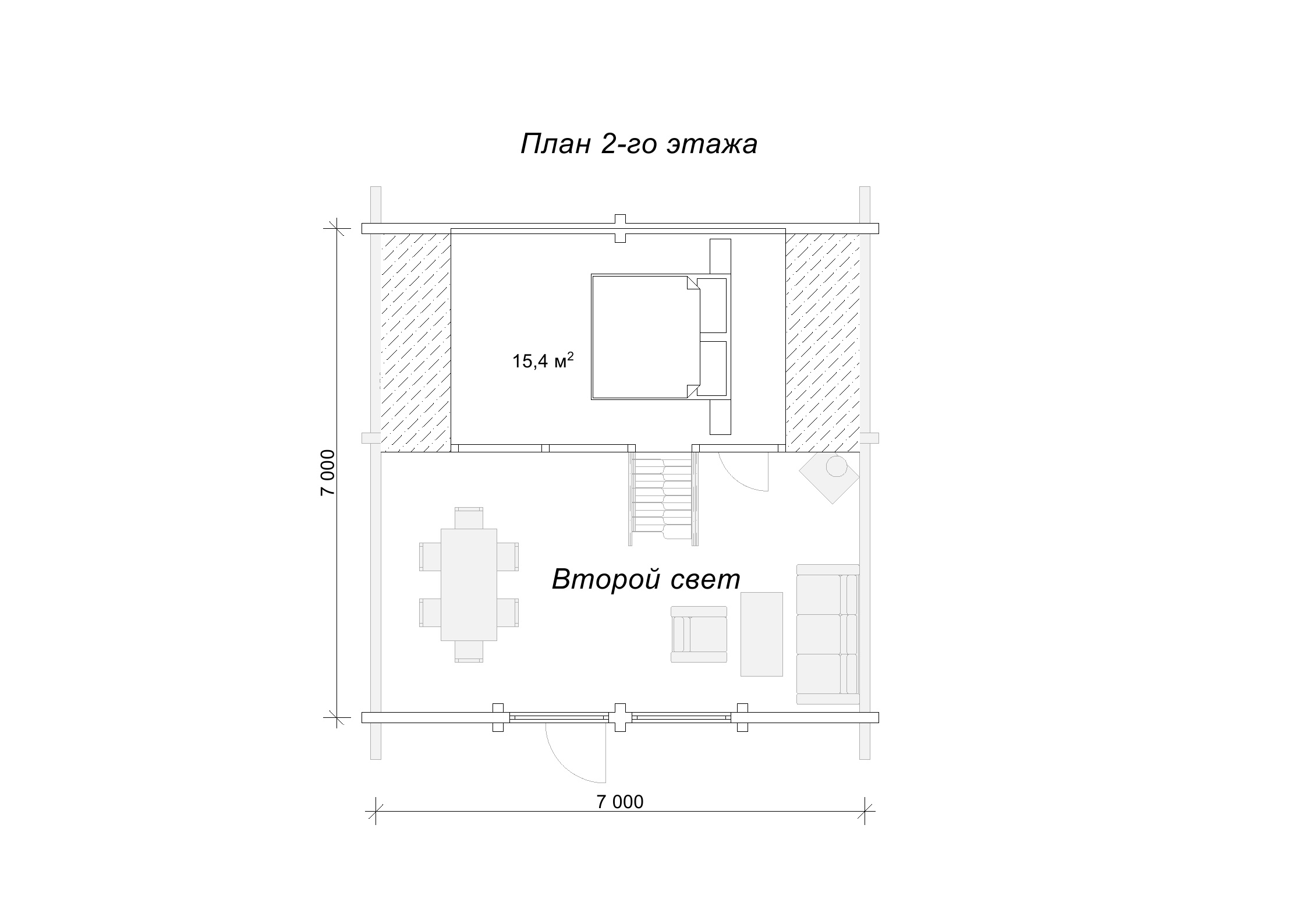 Параметри будівлі становлять 7 на 7 м. Усередині споруди простір організовано цікавим чином. Родзинкою планування можна назвати спальню на антресольному поверсі, площа якого становить 15,4 м2. На першому поверсі відведено простір у розмірі 28 м2 для кімнати відпочинку, для кухні 10,5 м2 та ванної стільки ж 10,5 м2. Загальна площа житлових приміщень дорівнює 70 м2. Зображення з візуалізацією інтер'єру на сторінці з проектом «Лекід6» презентують, наскільки стильно може бути оформлений котедж усередині.