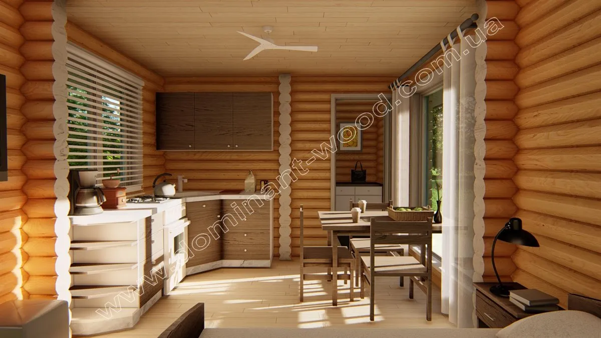 Як бачите, цього разу наші роботи були завершені на етапі встановлення базового комплекту будиночку на фундамент, підготовлений клієнтом завчасно. Після того, як монтаж був закінчений, господар зайнявся завершенням свого будиночку під ключ самостійно. Тим самим, отримав повну свободу дій у втілення своїх мрій щодо оснащення котеджу. Уявіть, що ви майбутній власник будиночку «Елов». Яким ви його бачите? Про що ви мрієте? Можливо, про те, як будете прокидатися від співу птахів, виходити босоніж на росяну траву й відчувати запах соснового дерева. А ввечері запалювати ліхтарики, сідаючи за стіл із друзями, сміятися й довго говорити про життя. Усередині - простір, де панує тепло й простота: кухня з ароматом свіжозвареної кави, ліжко з м’якою ковдрою, куточок для улюблених книг. А поруч із будиночком - клумби з квітами, трави, що пахнуть на сонці, і маленький мангал, біля якого збирається родина. «Елов» - це не просто квадратні метри, а місце, де оживають мрії про спокій і гармонію, які вже готові стати реальністю. А «Домінант» добре знає, як зробити це з дерева!