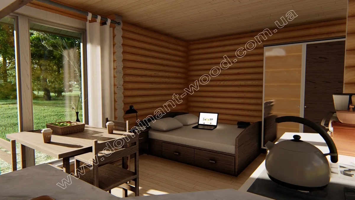 Невеличкі гостьові будиночки-студії чи дачні котеджі, де можна відпочити і прийняти друзів, слугують справжніми острівцями затишку та створюють відчуття власного маленького світу. Саме тому в каталозі проектів «ДОМІНАНТ-ВУД» ми зібрали велику добірку готових рішень компактних будинків. Один з мініатюрних, але дуже зручних будиночків - це проект «Елов» . Він максимально простий та затишний, а також уособлює бачення гостьового будиночку більшості наших клієнтів, адже містить все для справжнього комфорту й відновлення на природі. Сьогодні ми охоче продемонструємо, як зробили «Елов» з клеєного брусу.