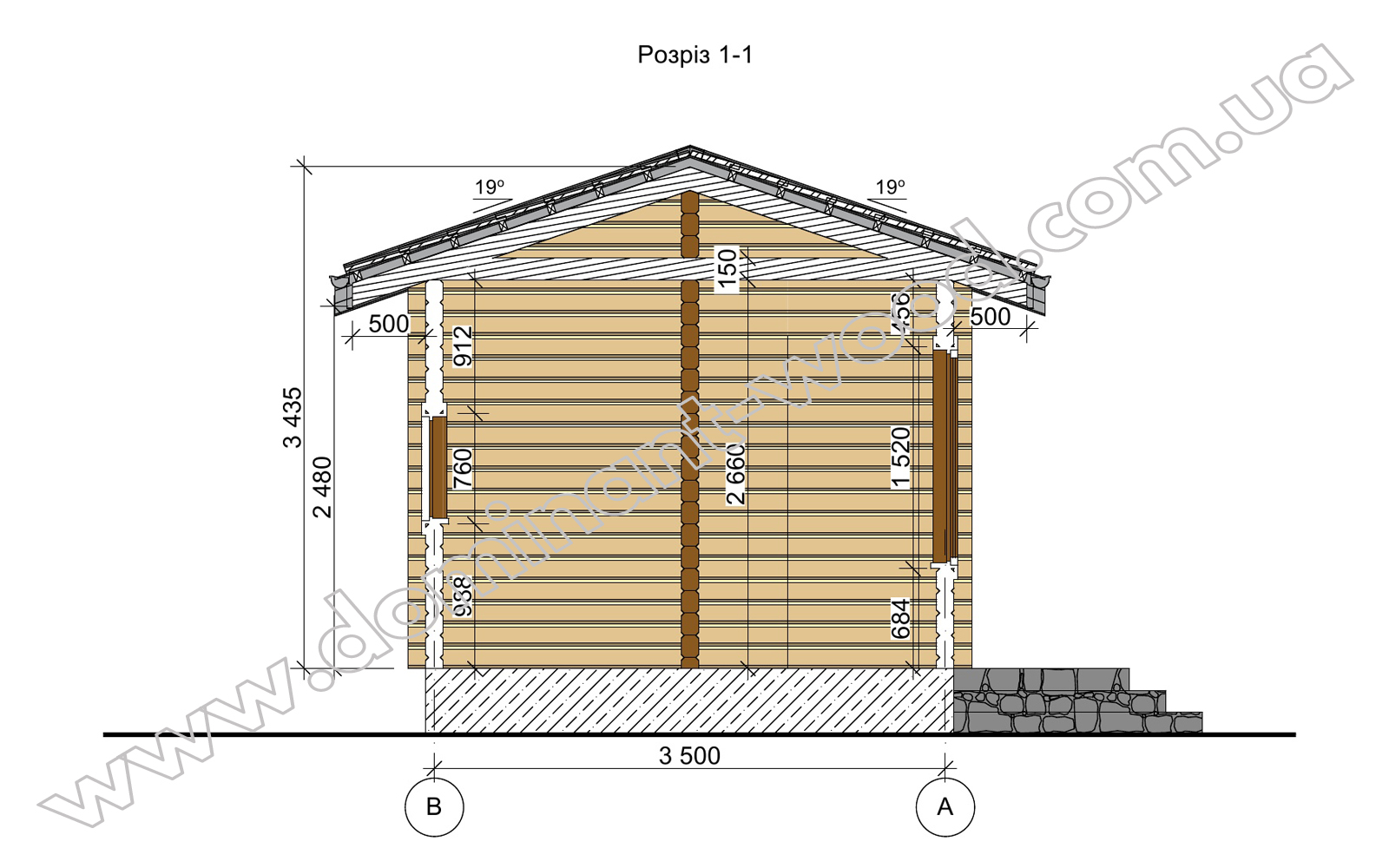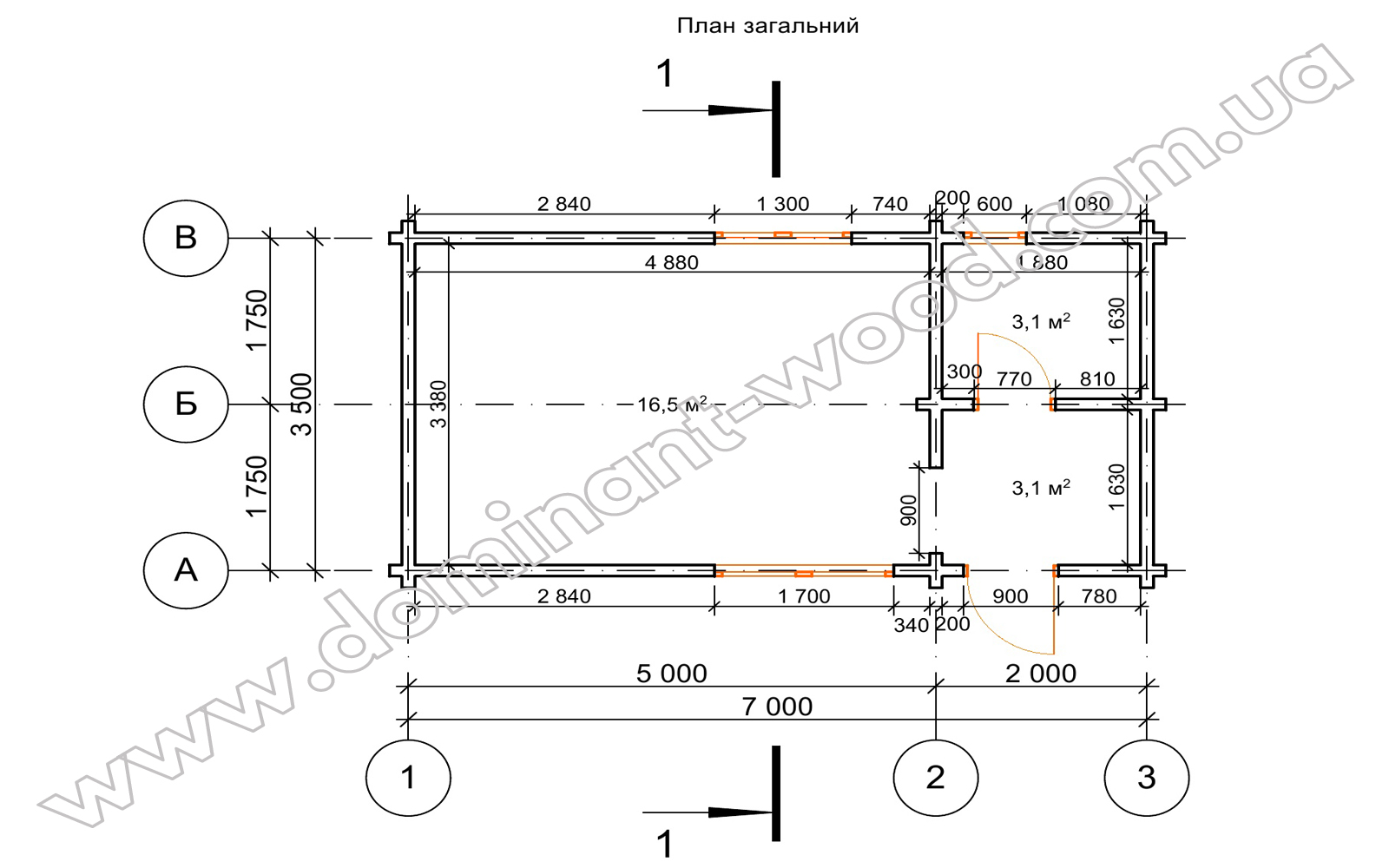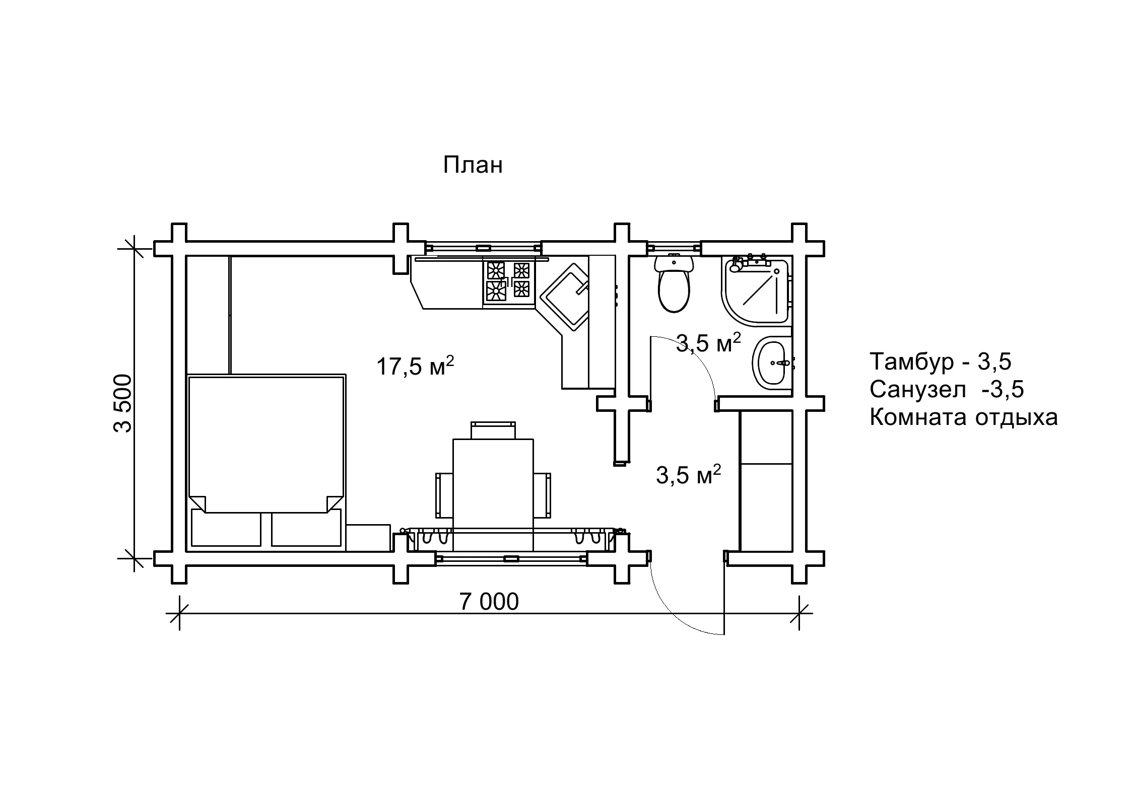 План будиночка-студії «Елов» 3,5 на 7 м