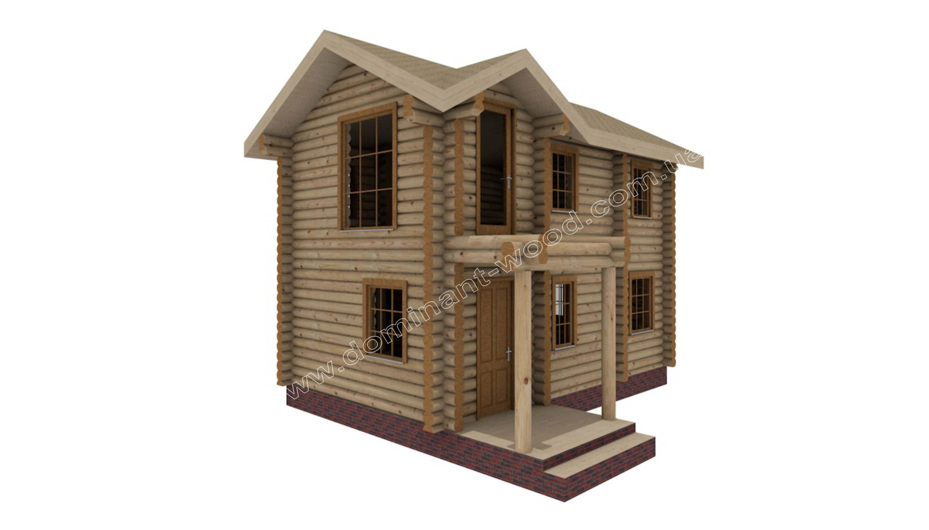 Біля входу в будинок сплановано мініатюрний ґанок площею 2,62 м2, якраз під балкончиком другого поверху. Є в котеджі і бічні двері для виходу у дворик. На фасадах бачимо велику кількість вікон. Це візуально полегшує масивну конструкцію з максимального діаметра зрубу 220 мм. Великі вікна наповнюють котедж світлом і надають своєрідної чарівності. Завдяки гарній інсоляції дерев'яного будинку, всередині приміщень завжди буде світло і затишно.