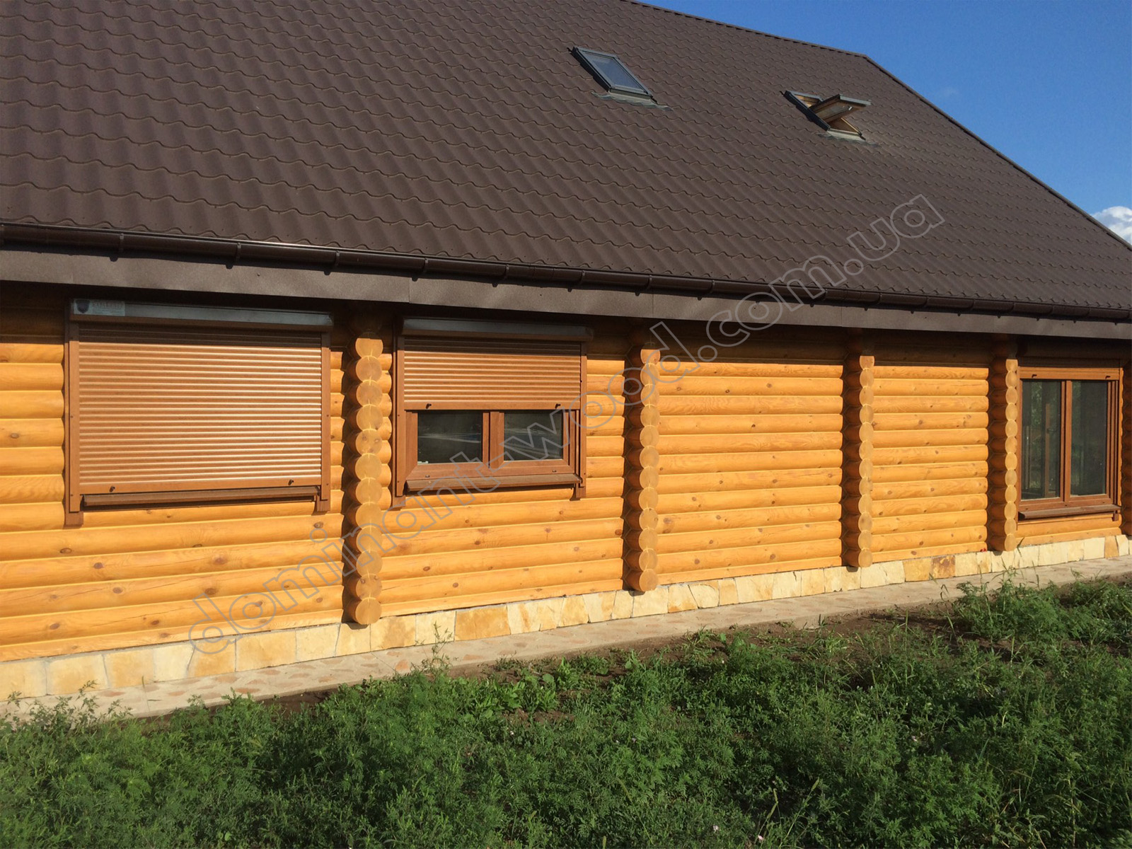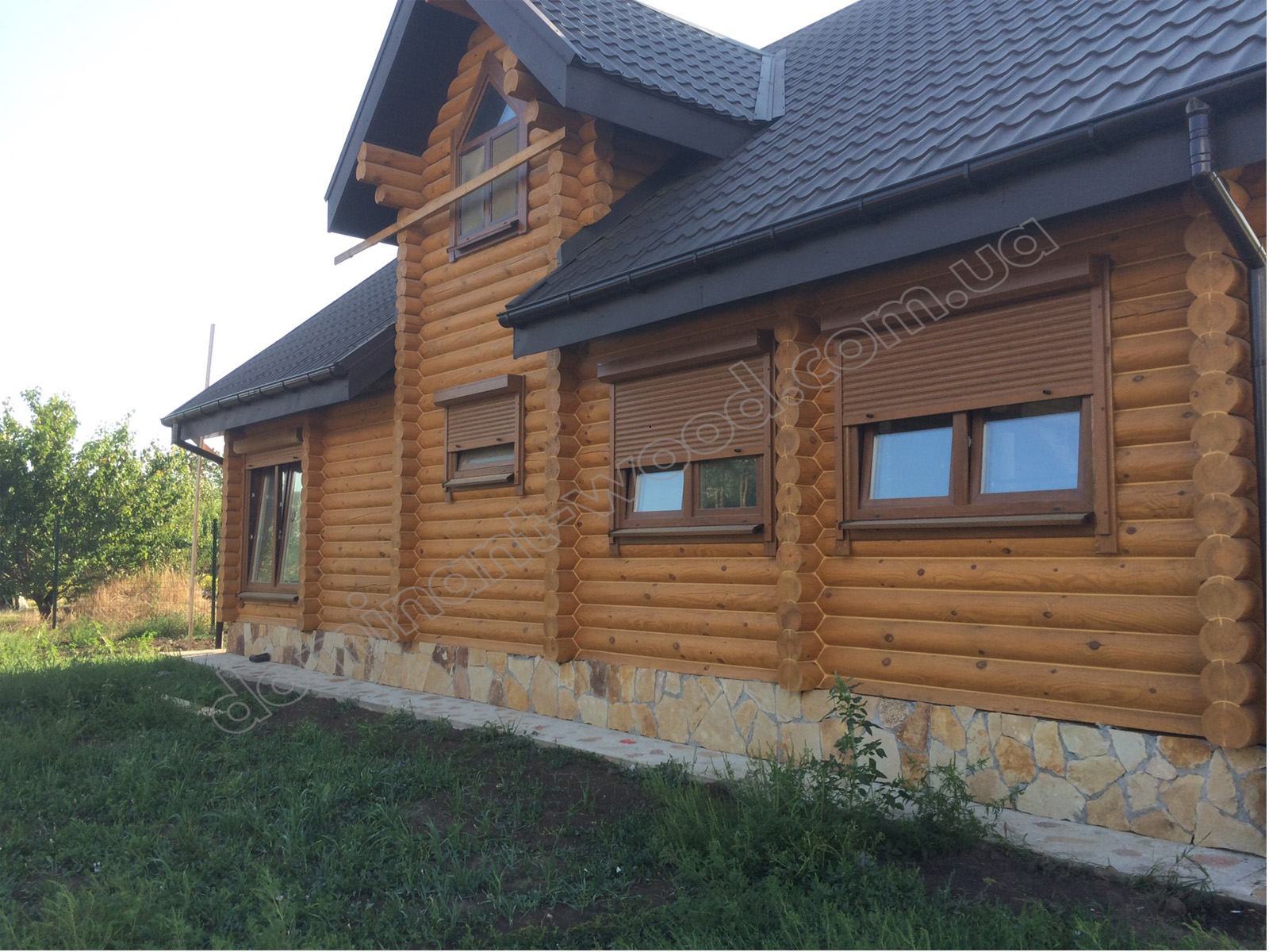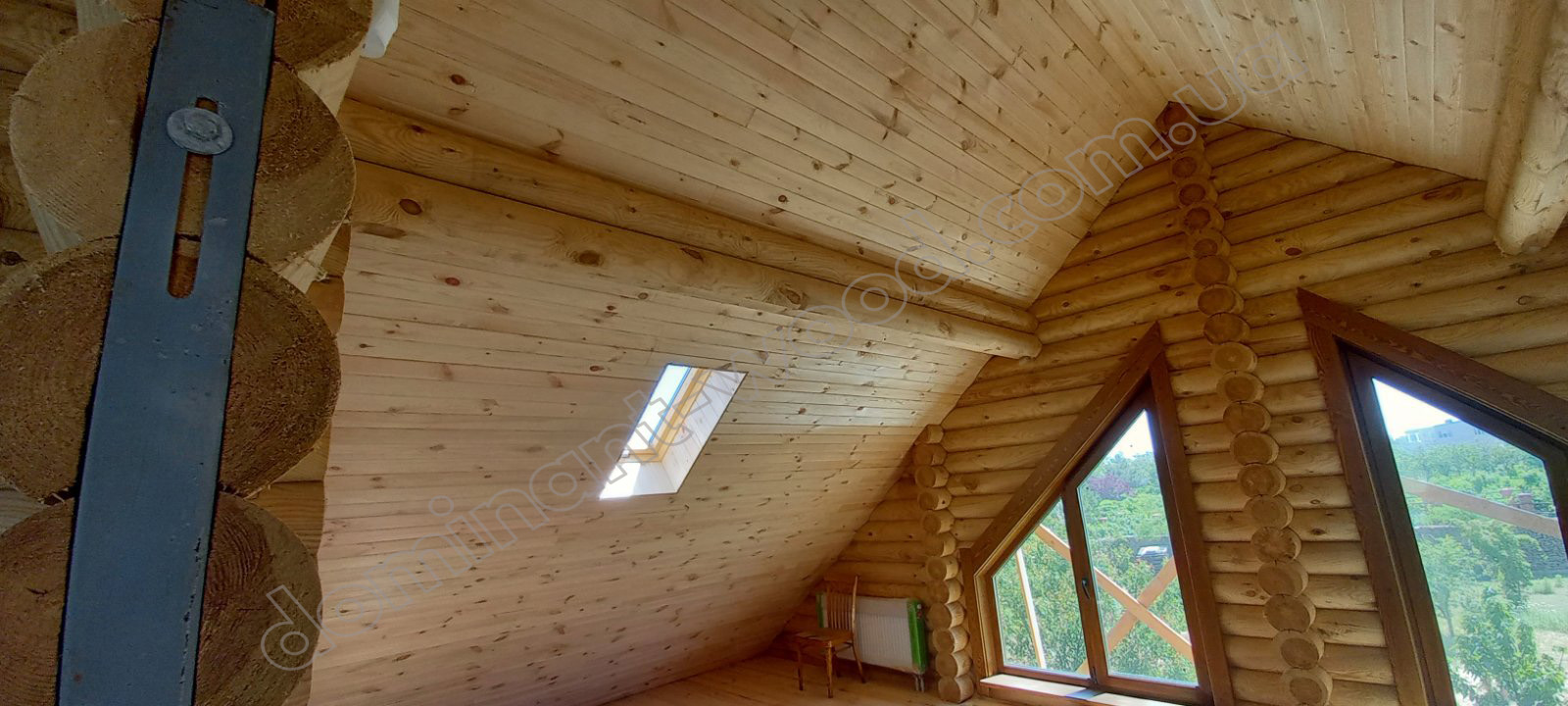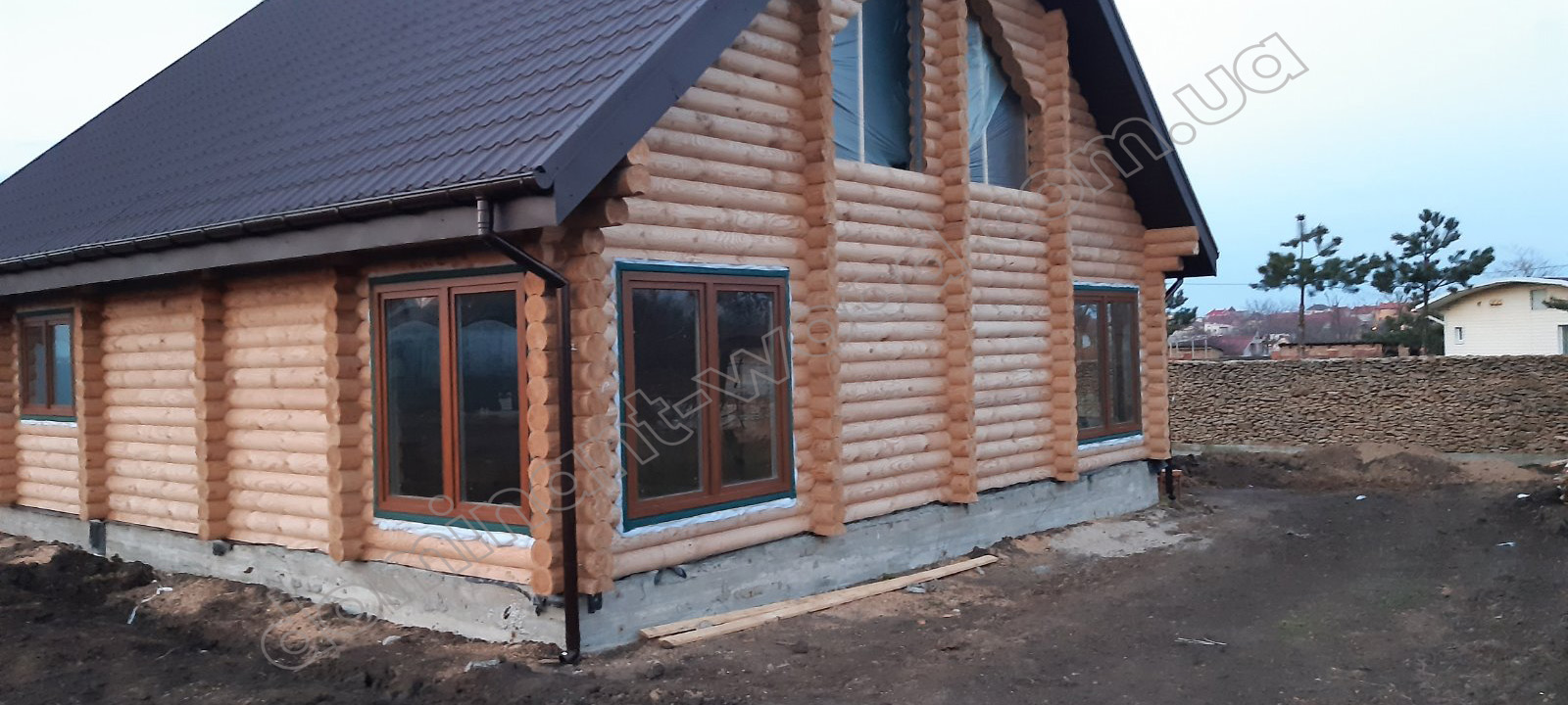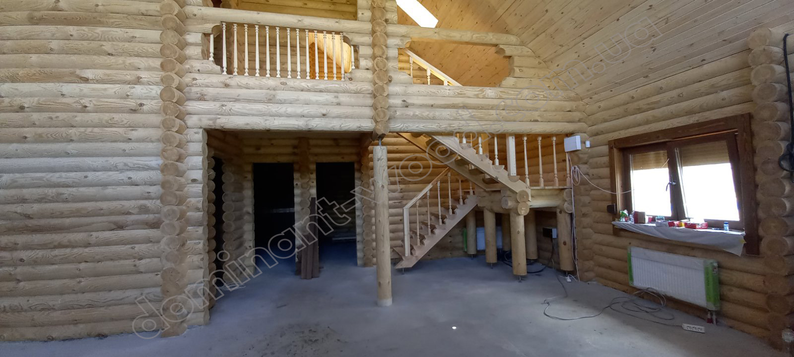 У результаті спільної роботи замовника та фахівців компанії «Домінант» було розроблено унікальний проєкт будинку для постійного проживання. Для будівництва стін було обрано оциліндровану колоду діаметром 200 мм. Така значна товщина деревини забезпечує круглорічний комфорт проживання в оселі та достатню шумоізоляцію. Адже за показниками тепла 200 мм сосни працюють еквівалентно 890 мм цегляної стіни. Взимку в оселі добре підтримується тепло, а влітку довше зберігається приємна, прохолодна свіжість хвойного лісу. Соснова колода наповнює повітря корисними фітонцидами, створюючи здорову атмосферу. А ще такий масивний розмір колоди, закладеної в стіни будинку, слугує запорукою міцності і довговічності конструкції. Укладання колод за технологією «місячний паз» із щілинним утеплювачем гарантує відсутність містків холоду. Уся деревина попередньо оброблена антисептиком, що захищає її від гнилі та цвілі. Просочення антипіреном додатково захищає будинок від швидкого займання.