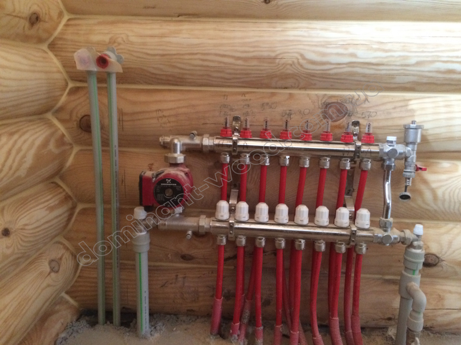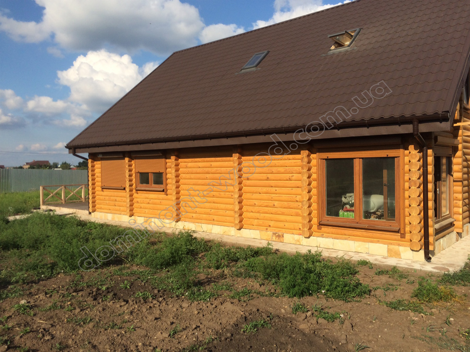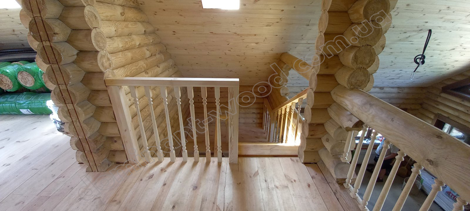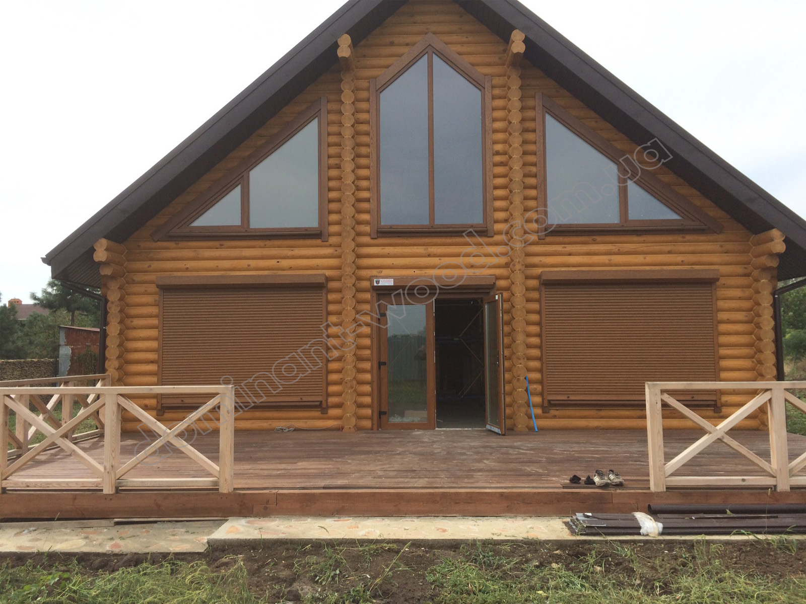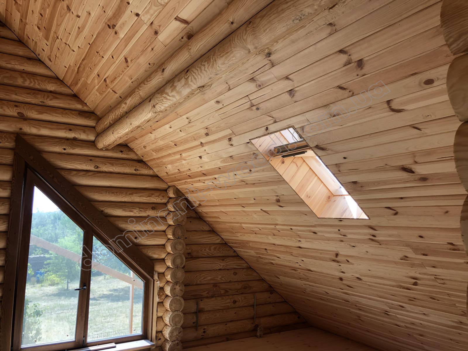 У результаті спільної роботи замовника та фахівців компанії «Домінант» було розроблено унікальний проєкт будинку для постійного проживання. Для будівництва стін було обрано оциліндровану колоду діаметром 200 мм. Така значна товщина деревини забезпечує круглорічний комфорт проживання в оселі та достатню шумоізоляцію. Адже за показниками тепла 200 мм сосни працюють еквівалентно 890 мм цегляної стіни. Взимку в оселі добре підтримується тепло, а влітку довше зберігається приємна, прохолодна свіжість хвойного лісу. Соснова колода наповнює повітря корисними фітонцидами, створюючи здорову атмосферу. А ще такий масивний розмір колоди, закладеної в стіни будинку, слугує запорукою міцності і довговічності конструкції. Укладання колод за технологією «місячний паз» із щілинним утеплювачем гарантує відсутність містків холоду. Уся деревина попередньо оброблена антисептиком, що захищає її від гнилі та цвілі. Просочення антипіреном додатково захищає будинок від швидкого займання.