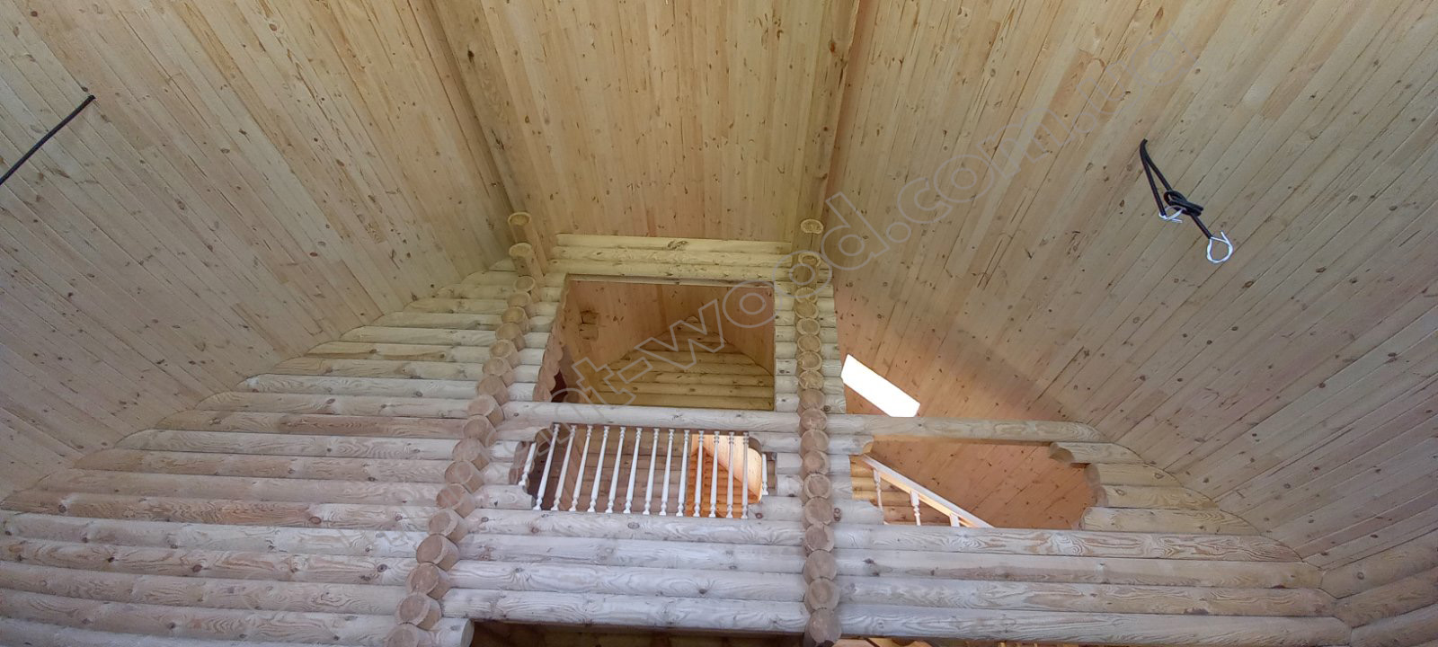 Завдяки продуманому функціональному зонуванню вітальню можна розподілити на кілька окремих зон. Під сходами заховати відокремлене приміщення санвузла. Далі облаштувати зону відпочинку з м’якими кріслами та пуфами. У цьому просторі також можна поставити багато зелених рослин. Рослинам буде дуже комфортно в природному середовищі дерев’яного будинку. Великий камін, акваріум, фортепіано - будь-які речі, що роблять ваше життя прекрасним, легко реалізувати тут завдяки великій площі вітальні та другому світлу над приміщенням. Також на першому поверсі передбачені інші кімнати. У кімнаті площею 15,5 м² можна облаштувати кухню. Тут вся родина із задоволенням збиратиметься за великим столом на смачні сніданки. Ще одна кімната може використовуватися як робочий кабінет або дитяча ігрова зона. Другий поверх розподілений на антресоль зі спальнями і друге світло.