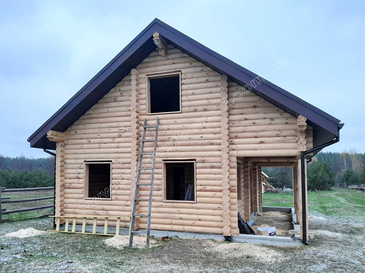Кожне виконання замовлення на будинок з дерева від «Домінант» націлене на задоволення потреб наших клієнтів. Ми знаємо як виготовити будь-яку дерев'яну конструкцію з урахуванням усіх їхніх вподобань. Наші досвідчені майстри завжди готові реалізувати проект якісно і в обумовлені терміни. Будинок з сьогоднішньої публікації яскраво демонструє ідею комфортабельної оселі від замовника, втілену нами у реальність. Пропонуємо дізнатись більше про індивідуальне замовлення в с. Раївка, Радомишльського району.