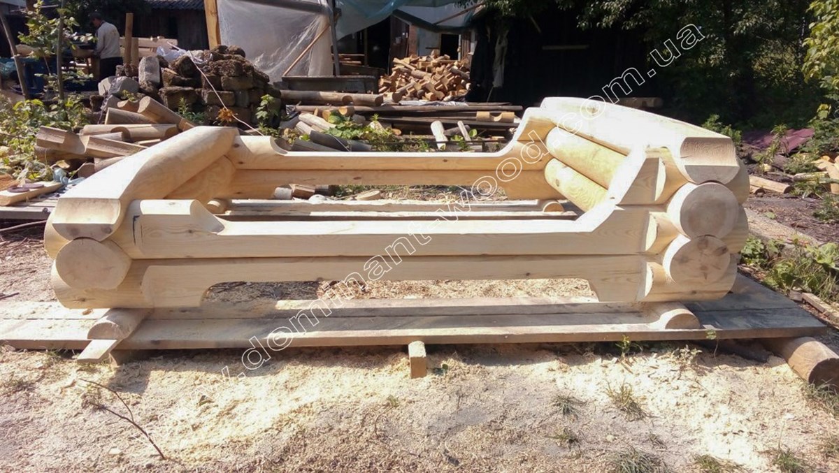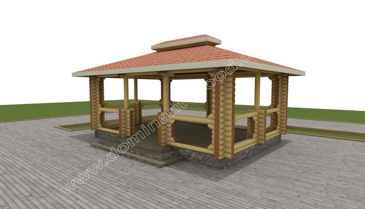 На перерахованих вище проектах наш замовник не зупинився і територію його ділянки прикрасили садові споруди від компанії «Домінант». Для затишного відпочинку на свіжому повітрі та влаштуванню сімейних свят і пікніків, клієнт побажав побудувати колодчасту альтанку. Для її будівництва було обрано оциліндрований брус діаметром 160 мм. Це оригінальна, прямокутна будова площею 24 м2, з відкритими стінами і чотирьохскатним дахом. Її проект замовник також створював разом з нашими фахівцями.