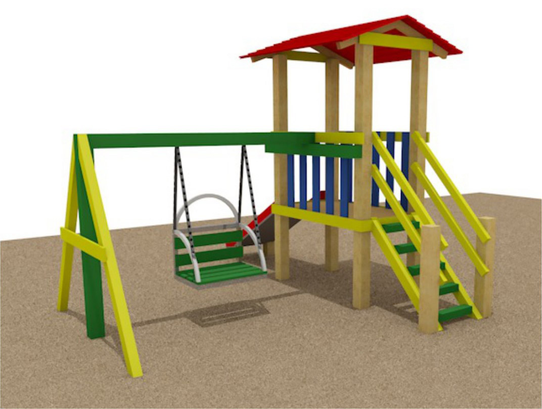 Крім цього, замовник наших проектів в Словенії подбав не тільки про дозвілля дорослих, а й дітей. Для їх активних ігор на свіжому повітрі наші фахівці виготовили дитячий майданчик з сухого брусу. Дорослі відпочивають в альтанці, а діти під наглядом катаються на гойдалках або з'їжджають з гірки - просто ідеальна картинка з життя!