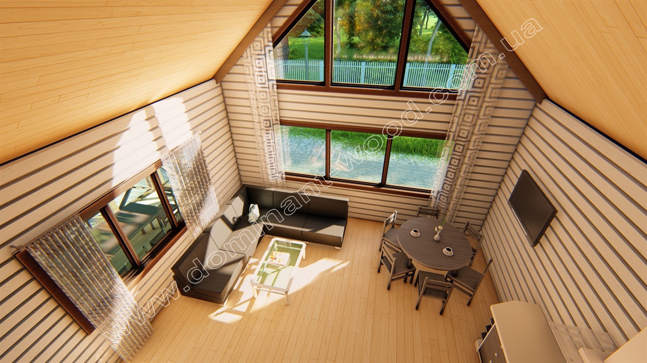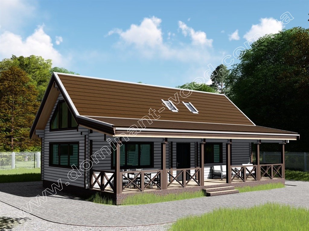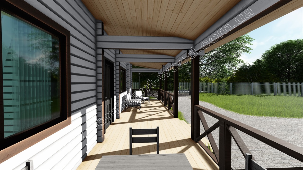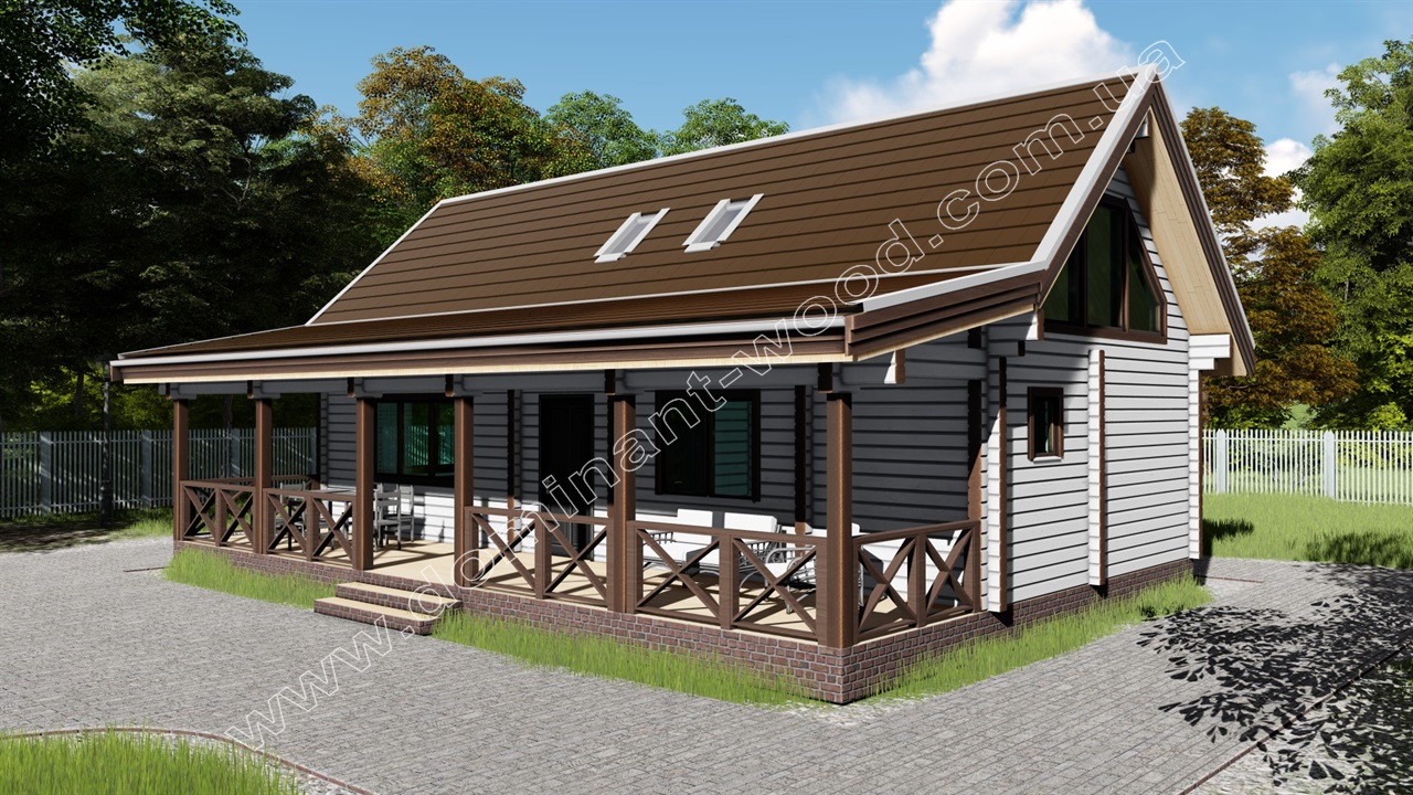 Такий будинок з лазнею, терасою під навісом та житловими приміщеннями буде вигідно здавати в оренду десь у мальовничому куточку природи. Ми реалізували це замовлення на березі затоки річки Дніпро у с. Гнідин. Саме для таких мальовничих місць і створюються мальовничі дерев'яні будиночки!