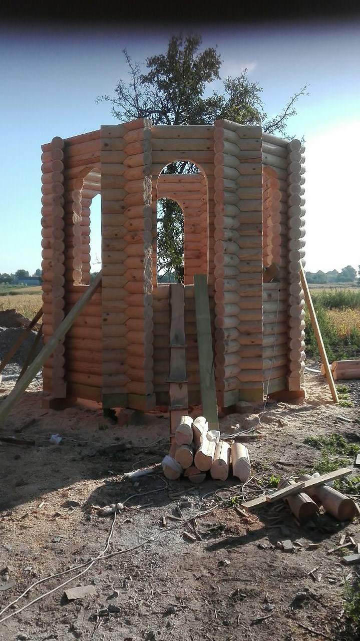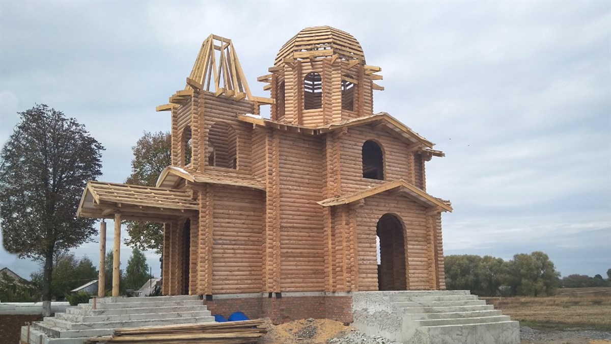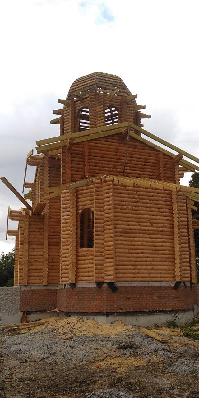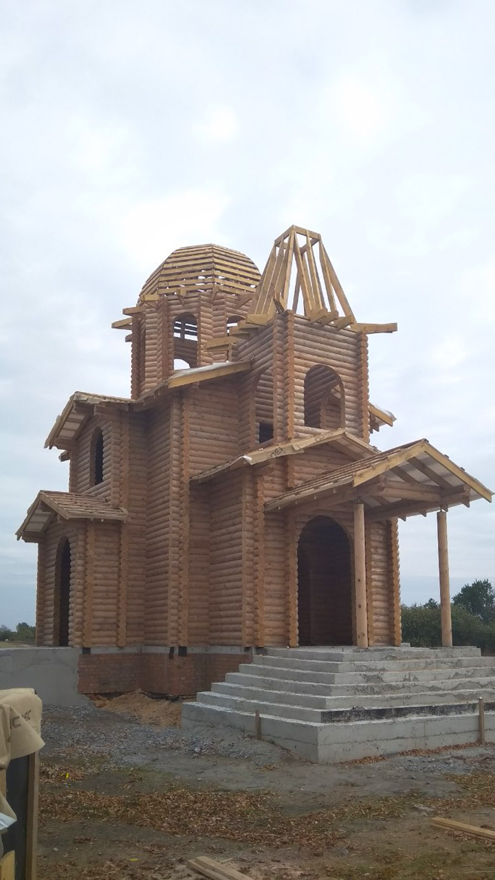 Саме цей проект для будівництва вибрала громада з села Тростинська Новоселиця, Васильківського району, Київської області. Це неймовірної краси храм з оциліндрованих колод. Для його будівництва замовник вибрав деревину діаметром 180 мм. Такої товщини буде досить для забезпечення надійності і довговічності будови. Крім того, низька теплопровідність соснової деревини, з якої ми виробляємо комплект споруди, допоможе легко обігріти храм взимку. Для будівництва наших проектів ми закуповуємо тільки високоякісну, екологічно чисту деревину, що особливо важливо для церковних проектів. Ніщо не повинно руйнувати їхню ауру та енергетику. Подальшу обробку і сушку колод наші фахівці проводять в цехах компанії. Після цього деревині надають необхідну форму і використовують для будівництва проектів.