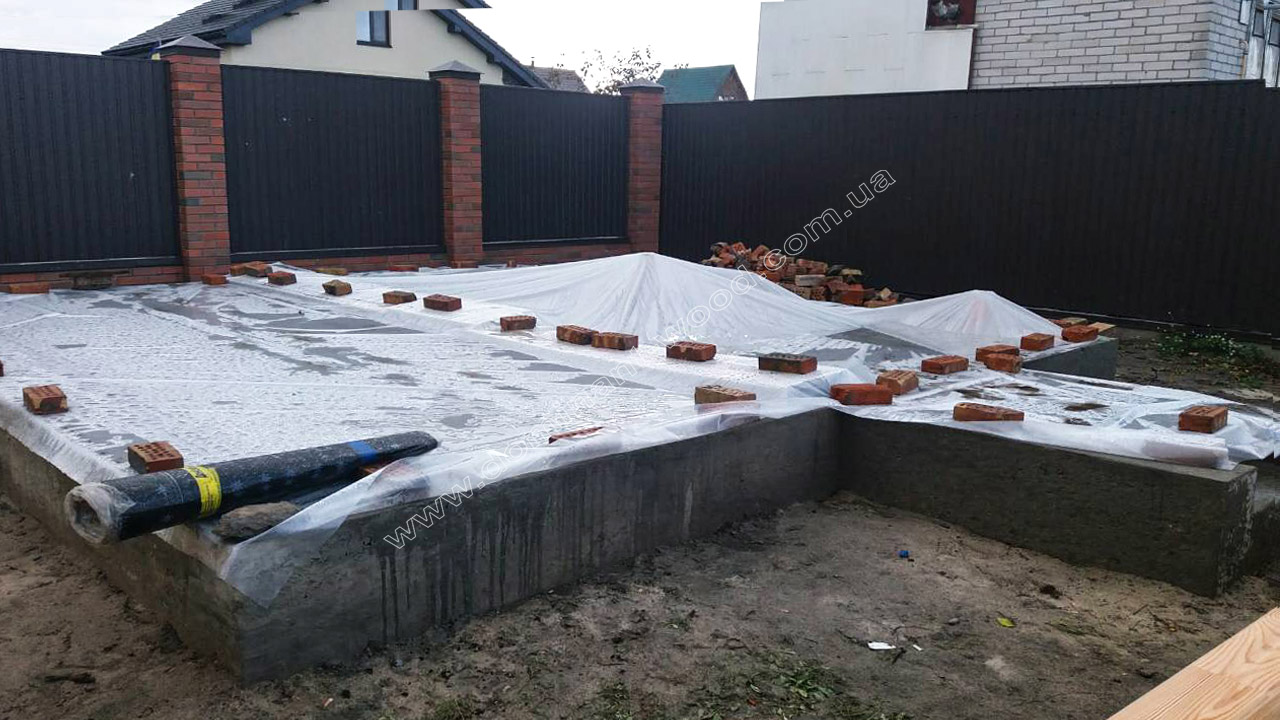 Замовник купив у нас базовий комплект лазні «Орбелі» саме у такому вигляді, як розписано на сайті, на сторінці з проектом. Це дуже зручно, адже купуючи базову комплектацію, ви відразу бачите список комплектуючих і ціну, що завжди актуальна на нашому сайті. Звісно, у нас для вас завжди є безліч додаткових і спеціальних пропозицій. Зокрема, послуга монтажу, яка у випадку з будівництвом проектом «Орбелі» коштувала замовнику додаткових 20% до вартості базового комплекту, що зазначається на сайті. Майстри «Домінант» поставили корпус баньки на фундамент, заздалегідь підготовлений замовником по кресленнях нашого архітектора.