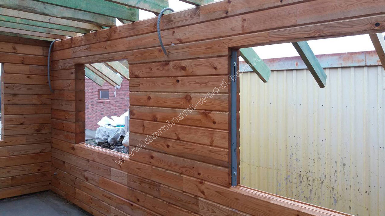 Так само гідним вибором для зведення стін лазні є клеєний брус. На нашому виробництві пропонується товщина клеєного брусу 120 мм і 180 мм. Для будівництва лазні оптимальний вибір - 120 мм. Цього достатньо для підтримання приємного мікроклімату всередині приміщень. Завдяки низькому коефіцієнту теплопровідності соснова стіна товщиною 120 мм еквівалентна товщині 500 мм цегляної кладки. Тому соснова деревина - найбільш теплий, природний і естетично привабливий вибір з усіх інших будівельних матеріалів. А професійно оброблений від шкідників та загоряння брус стане запорукою довговічності будь-якої стінової конструкції.