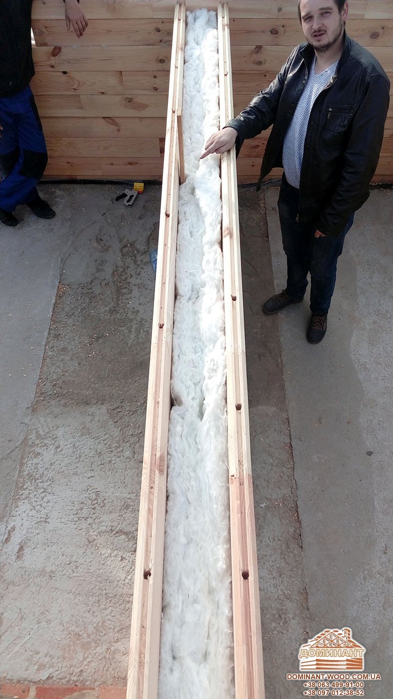 В основі цього методу - зведення стін з двох рядів бруса, простір між якими заповнюється утеплювачем, що забезпечує відмінну теплоізоляцію. Ми використовуємо в якості утеплювача тільки натуральний матеріал, використання якого надає споруді екологічну безпеку і гіпоалергенність. Будинки з такими утеплювачами сприяють створенню найбільш сприятливого мікроклімату всередині приміщення завдяки дихаючим властивостям своїм і самого бруса.