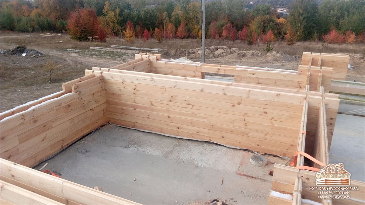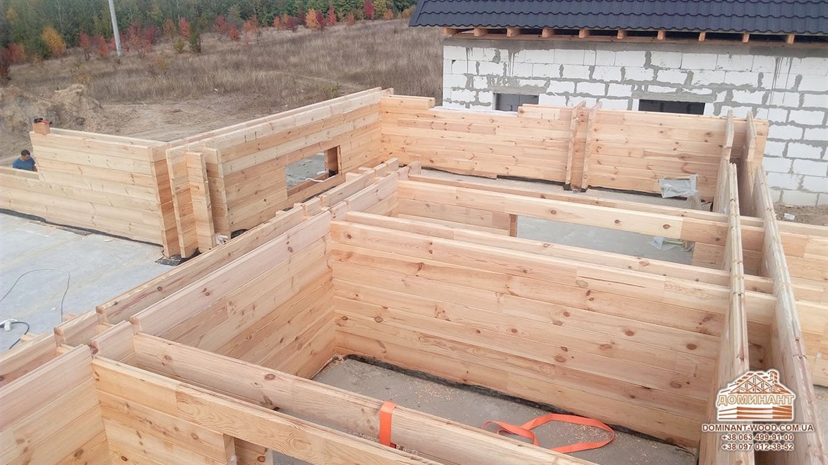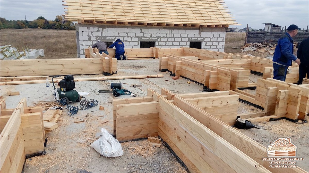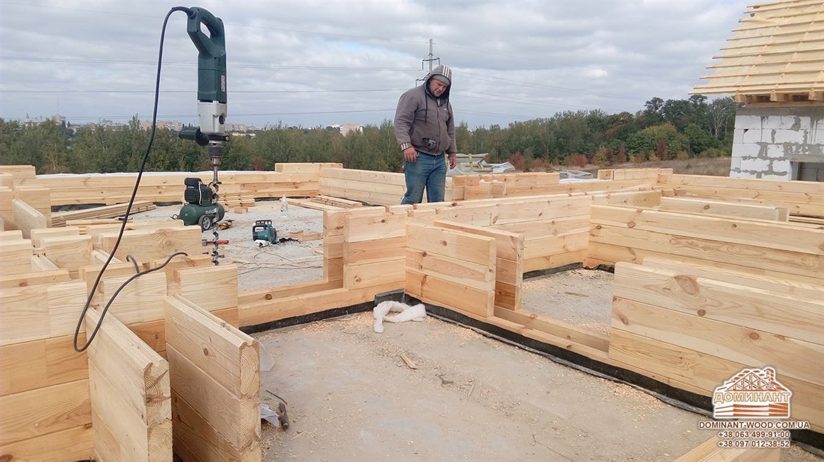 На даний момент ми займаємося будівництвом індивідуального проекту площею 262,4 м2 із застосуванням подвійного бруса і утеплювача в Житомирській області. Як поступово, вінець за вінцем, відбувається зведення будинку можна подивитися на фото нижче. Ми не раз вже робили публікації, присвячені саме цій технології. З огляду на те, що чимало людей цікавляться спорудженням такого житла давайте зупинимо свою увагу на основні особливості технології паралельного бруса.