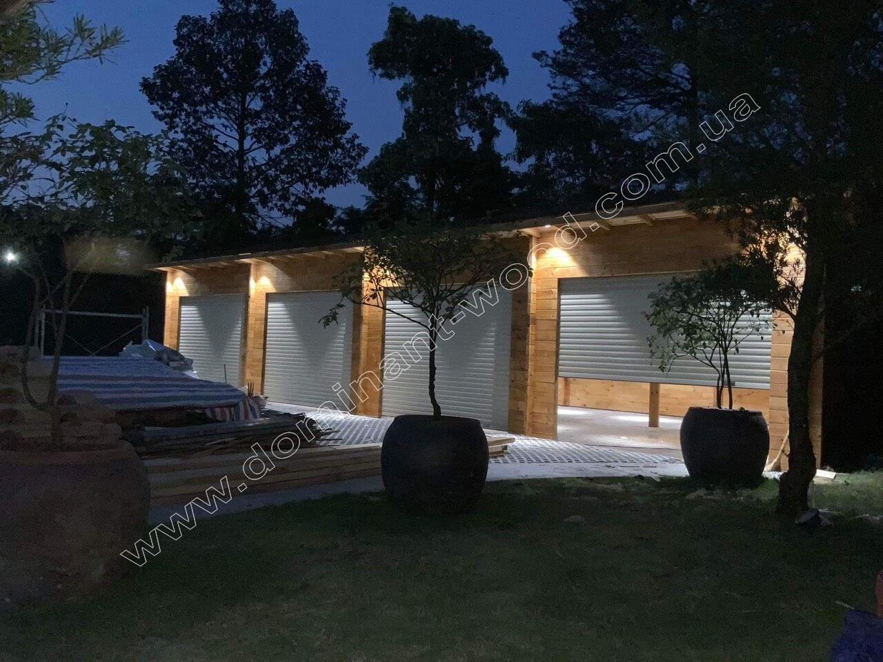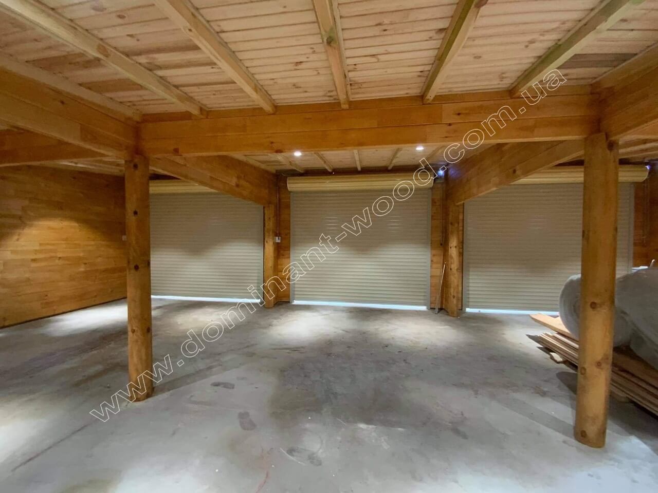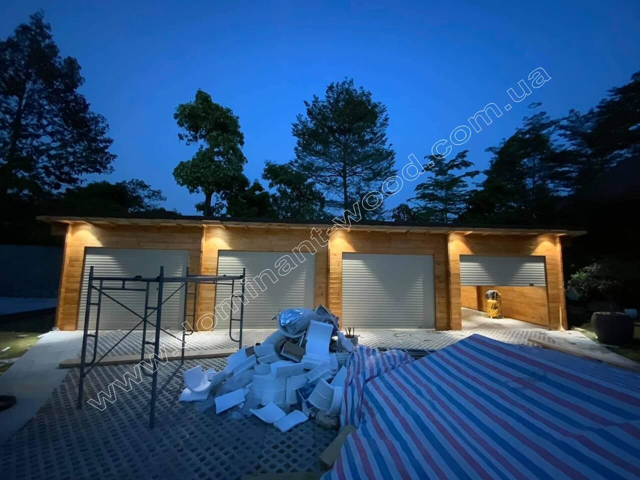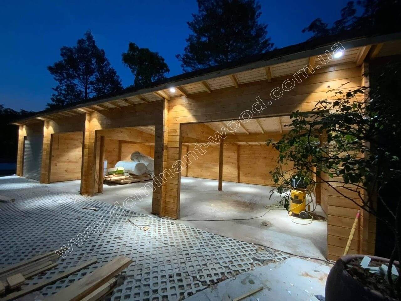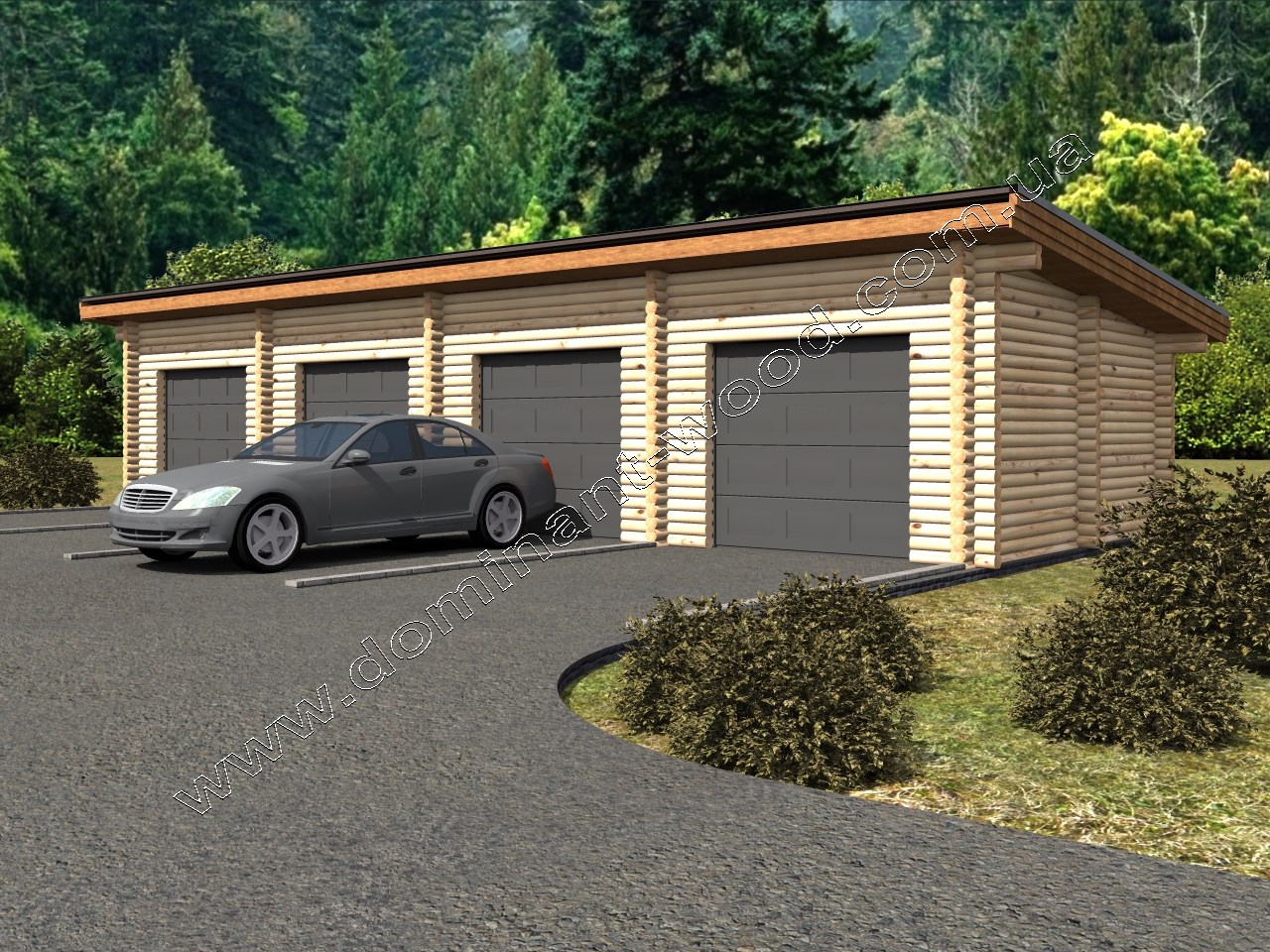 Колекція проектів і побудованих дерев'яних зрубів «Домінант» постійно поповнюється новими роботами. Ми будуємо не тільки комерційні об'єкти, житлові особняки або гостьові котеджі, а й доповнюємо їх функціональними будівлями, без яких складно обійтися сучасній людині. Наприклад, в цій публікації показуємо приклад будівництва гаража з брусу на чотири автомобілі. Дерев'яний гараж з соснового бруса, виконаний акуратно і презентабельно, стане відмінним доповненням до житлового приміщення або комплексу споруд з будь-якого матеріалу!