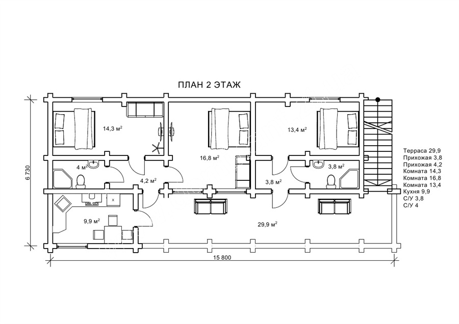 Що стосується внутрішнього планування, то два поверхи готелю передбачають номери з санвузлами, що забезпечує винятковий комфорт всім мешканцям. На кожному поверсі спланована кухня, і це дуже зручно для тих гостей, хто бажає влаштувати вечерю в номері або на балкончику, щоб не ходити в головний ресторан на території бази відпочинку. Просторі тераси і балкони прикрашають фасади готелю, пропонуючи ще більше місця для дозвілля гостей на свіжому повітрі. Сходи сплановані зовні, щоб не займати корисну площу всередині готелю.