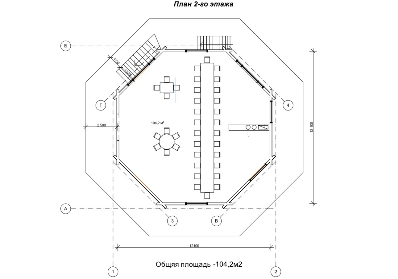 Всю площу другого поверху 104, 2 м2 займає розкішний ресторан. Особлива форма будівлі створює своєрідний стиль приміщення. З усіх боків по периметру розташовані великі вікна. Простір завжди наповнений повітрям і світлом. Велика площа ресторану дає можливість великій кількості гостей відчувати себе вільно. Організувавши в такому восьмигранному ресторані сферичної форми весільний банкет, молодята зможуть бути в центрі уваги в прямому сенсі слова. По всьому периметру ресторану на вулиці розташована тераса. Після смачної вечері або обіду, гості зможуть вийти на вулицю і насолодитися красою природи.