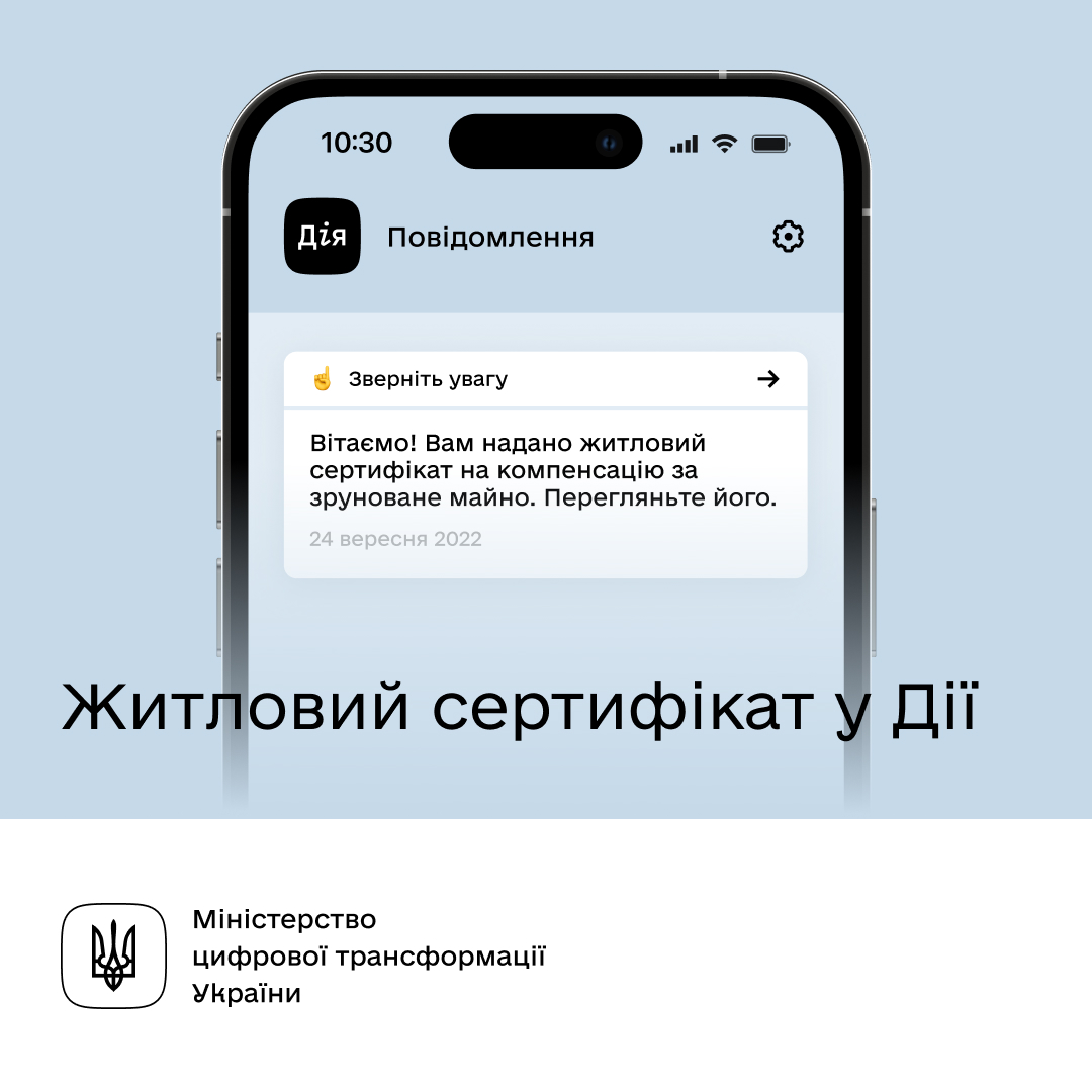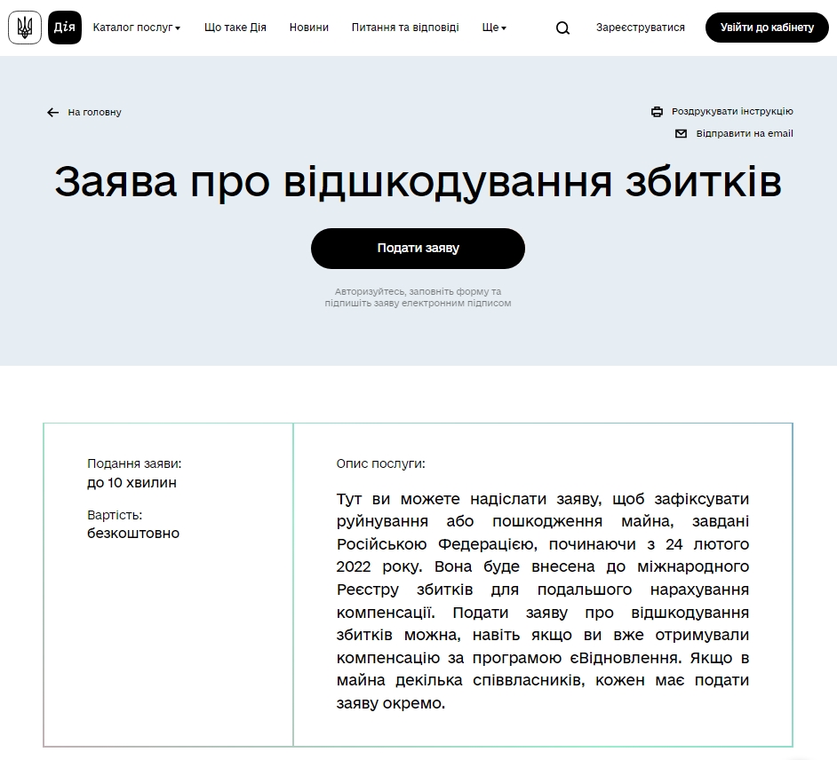 Отже, на основі висновку комісії по повністю зруйноване житло, подається заява на порталі Дія.