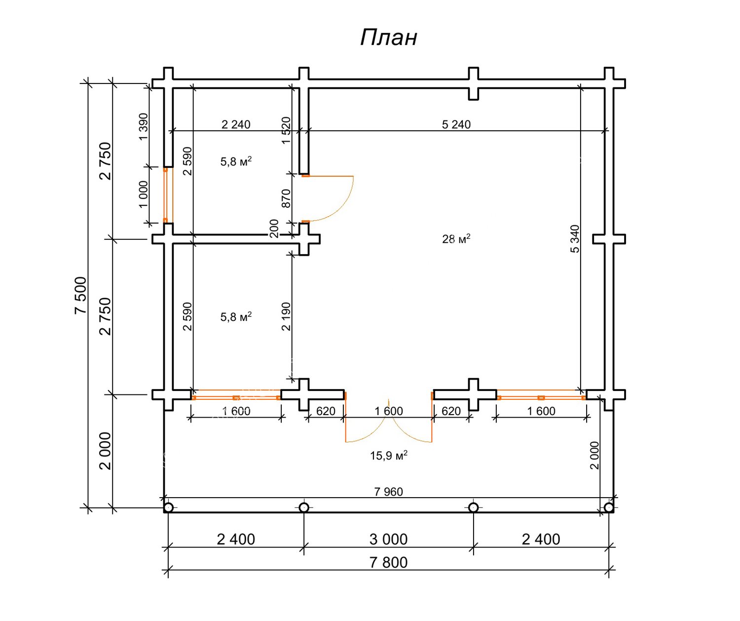 Літній будиночок площею всього 58,5 м2 по осям колод, з яких складаються його стіни, був збудований на мальовничому пагорбі в оточенні природних краєвидів. Діаметр колод для зведення стін котеджу становить 160 мм, і що найцікавіше - завдяки колодчатим стінам цей будиночок «дихає». Природні властивості деревини дозволяють підтримувати всередині комфортну температуру і вологість у будь-яку пору року. Але найприємніше всередині дерев’яної оселі - це аромат хвої! Уявіть собі: прокидаєшся вранці в дерев'яному будиночку - і вдихаєш запах лісу! Ось чому такі будиночки, зроблені з колод, вважають найкращими для здоров'я.