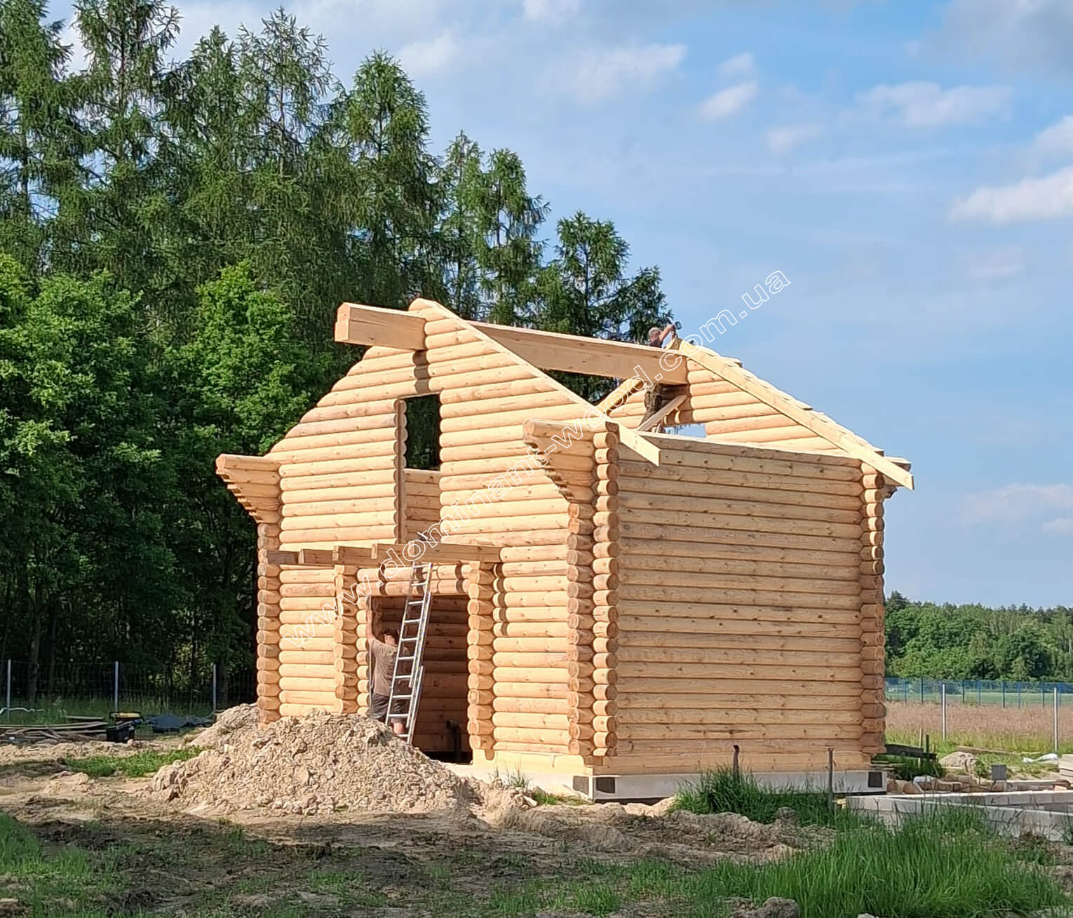 Чимало наших клієнтів з-за кордону звертаються саме з індивідуальними запитами. І це абсолютно зрозуміло: кожна країна має свої будівельні норми, традиції й очікування. Комусь важлива форма брусу і дизайн будинку, хтось просить в конструкції врахувати кліматичні особливості в регіоні. Тому ми завжди адаптуємо проект до конкретної ситуації. Індивідуальний підхід в проектуванні надає додаткові можливості і переваги будівництву. Саме завдяки індивідуальному підходу та добре налагодженій зовнішньоекономічній діяльності наші будинки вже побачили майже весь світ. На цей раз також ми повністю підлаштувались під бажання клієнта. Результатом нашого професійного втілення його ідеї став компактний двоповерховий котедж, виготовлений з оциліндрованої соснової колоди діаметром 220 мм. Ця товщина соснового зрубу чудово підходить для круглорічного житла, тому що гарантує комфорт в будь-яку пору року. В такому котеджі буде тепло взимку і прохолодно в літню спеку. Плюс масивні колоди на стінах створюють добротний вигляд будь-якої оселі.