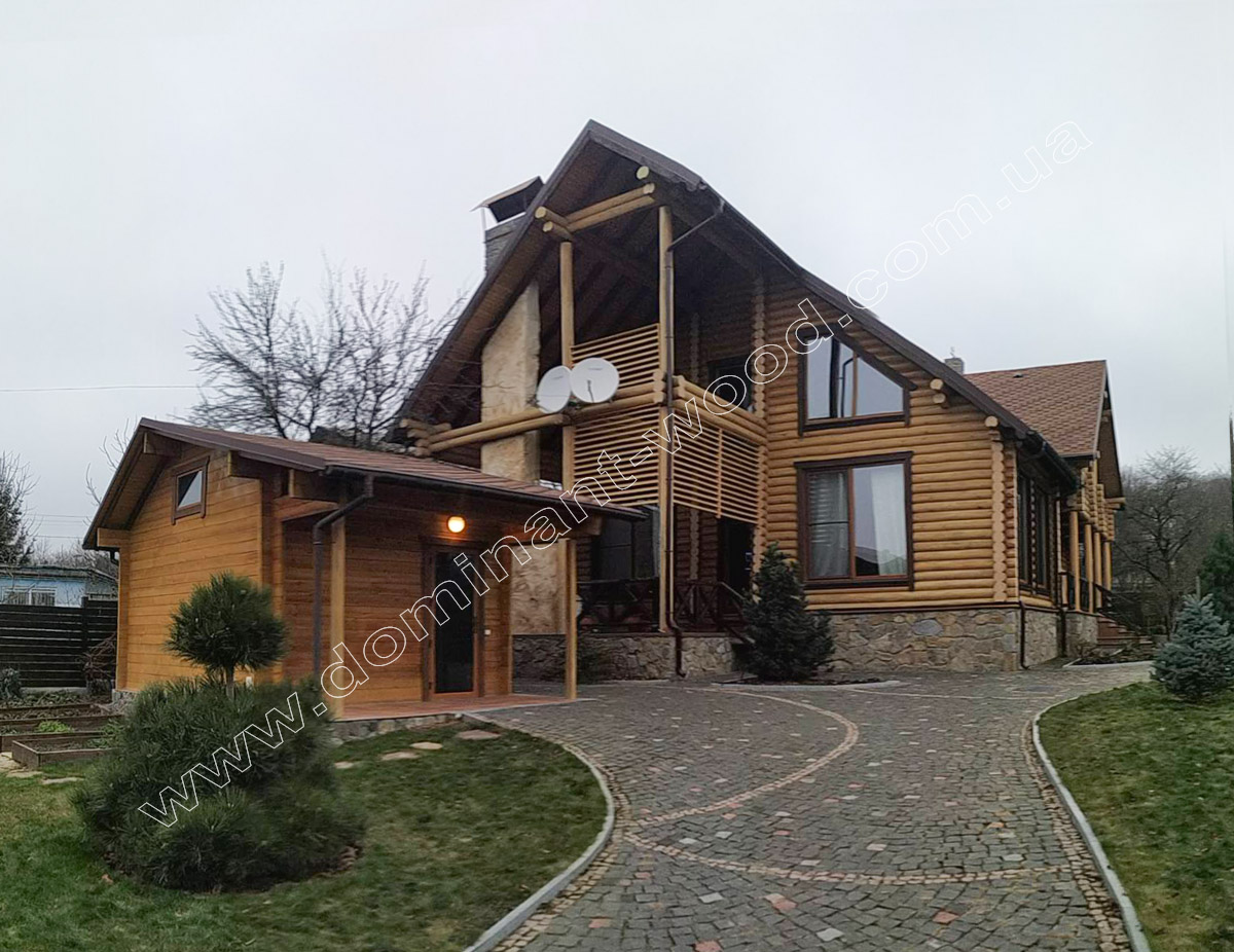 Проект оригінального і дуже гарного будинку «Сапфір» під стать своїй назві, взятої від дорогоцінного каменю, можна віднести до ексклюзивних проектів «Домінант» для творчих людей. Такий будинок призначений для тих, хто хоче придбати гарний, модний, сучасний і просторий маєток, а також має в своєму розпорядженні достатніми фінансами на масштабну споруду. Оциліндрований маєток за «Сапфір» наші майстри звели в Вінниці з колод діаметром 200 мм. Далі подробиці реалізації проекту.