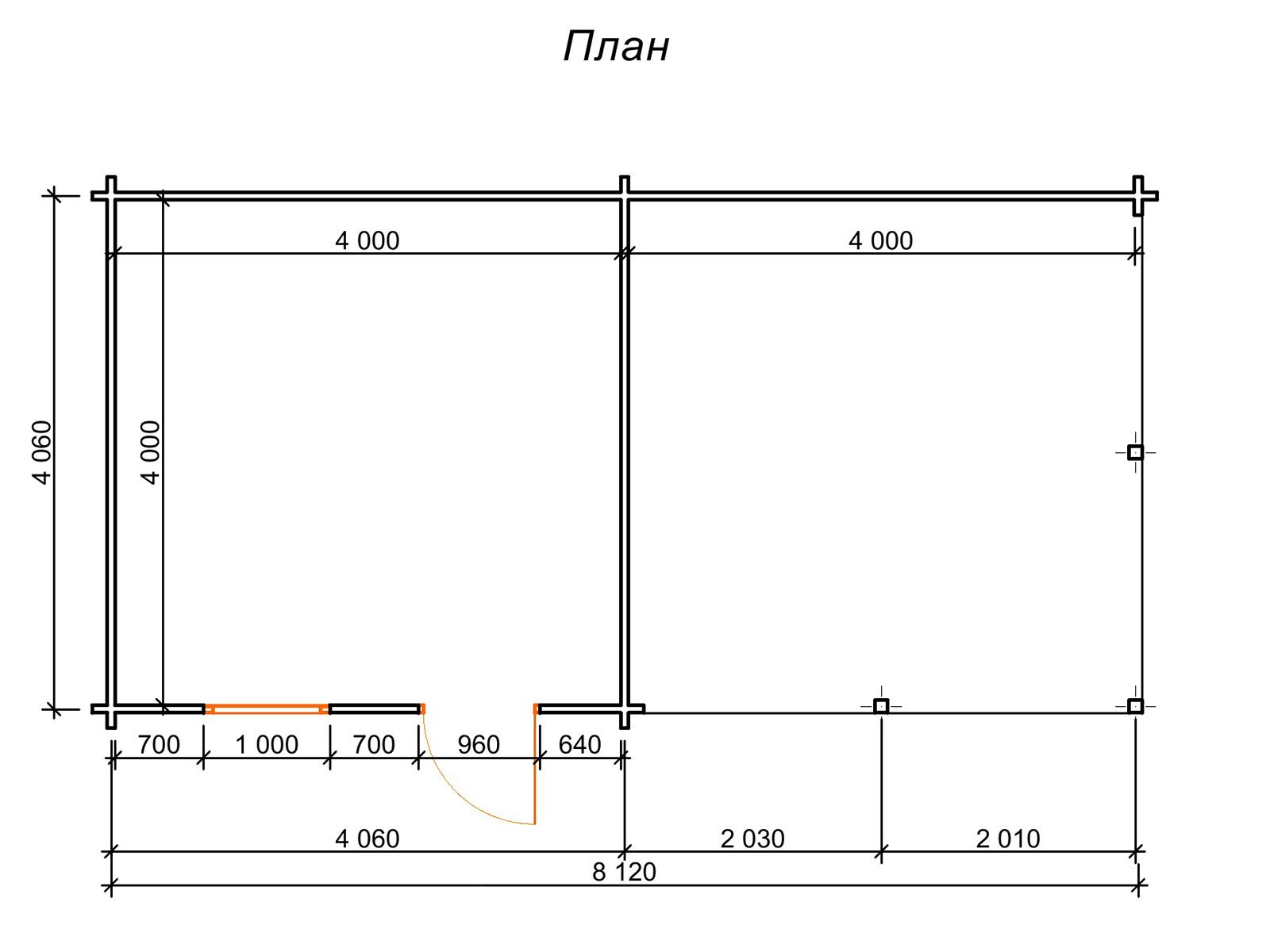 Отже, як бачите, наш замовник забажав собі профільовану альтанку з двох рівноцінних за розміром секцій - відкритого павільону і закритої кімнати. Такий план є дуже популярним, адже дозволяє використовувати альтанку не тільки для відпочинку на свіжому повітрі, а й створити простір для прийому гостей або затишний куточок для літньої кухні або власного хобі. Закрита кімната в альтанці така сама за розміром, як відкрита частина. Завдяки такій симетричності альтанка виглядає гармонійно і приємно. Розміри забудови склали 8,120 на 4,060 м.