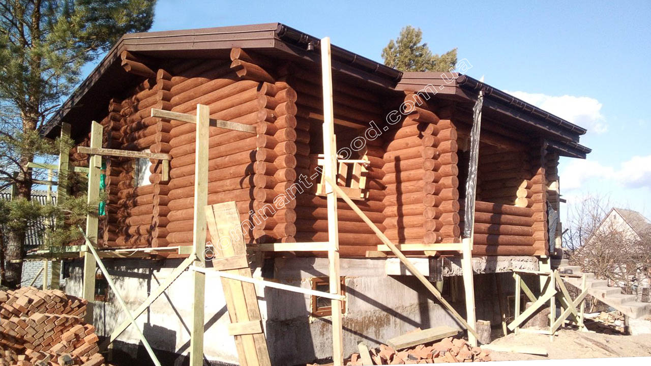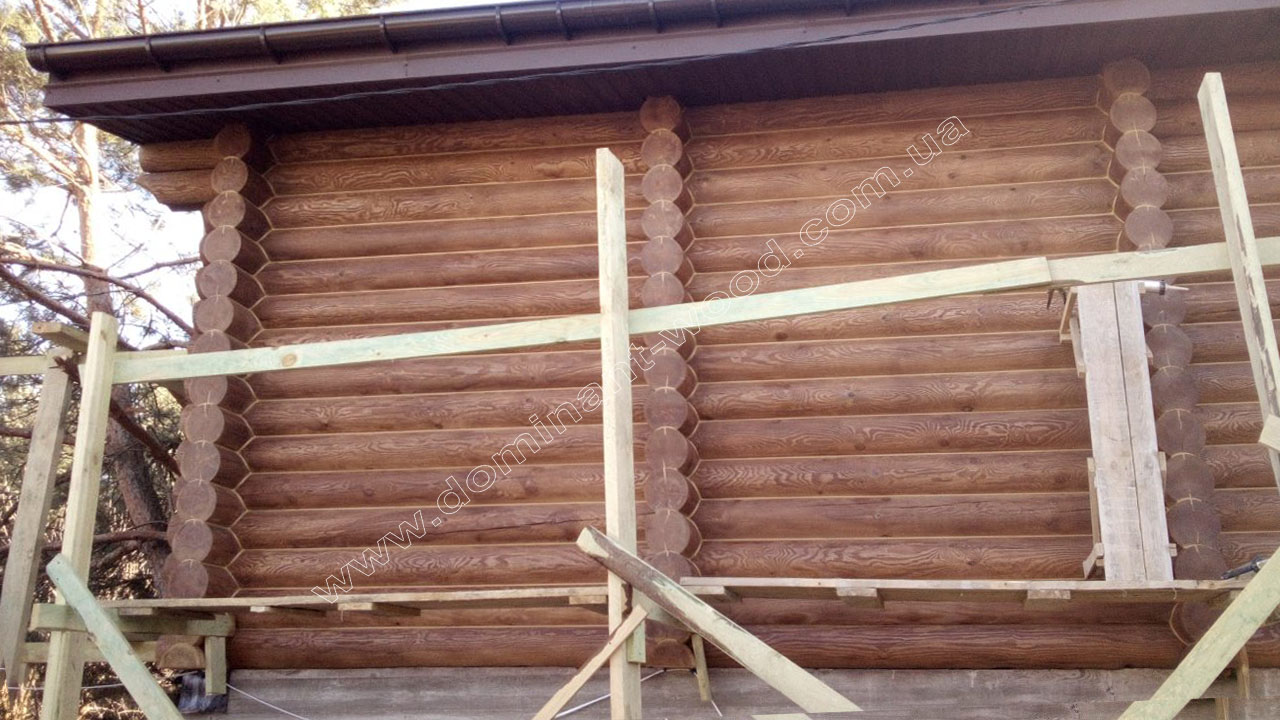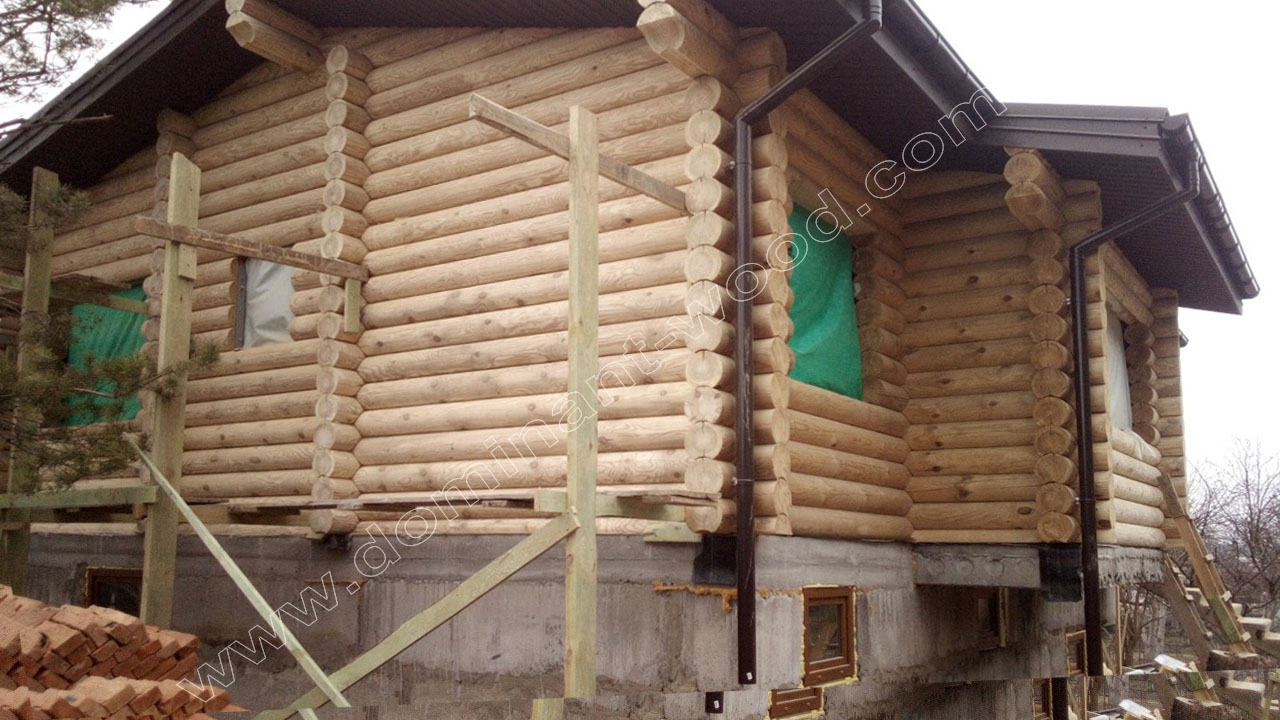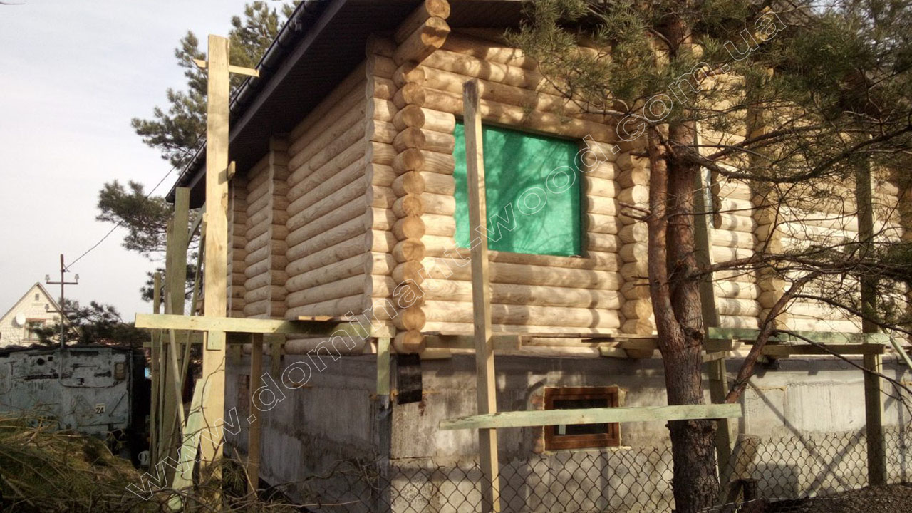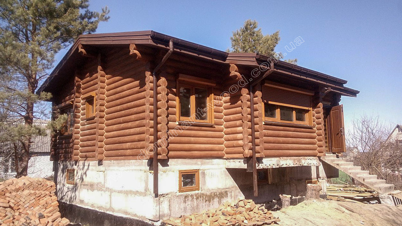 У випадку з індивідуальним замовленням житлового будинку з колод у Вишгороді - як видно на фото робіт, господар побажав придбати у нас не тільки базовий комплект з монтажем, але й повністю замкнутий контур, тобто покрівлю, вікна, двері. До того ж наші фахівці виконували усі фінішні роботи по оздобленню будинка, а саме шліфування і фарбування внутрішнє і зовнішнє, герметизацію швів, підбивали стелі вагонкою, встановили водостічну систему з відливами. Наші підрядники, що займаються столярними роботами, виготовили сходи вниз до цокольного поверху. Таким чином, замовник отримав повний спектр робіт і послуг, на які розраховував, та, відповідно, поетапно розпланував свій бюджет.