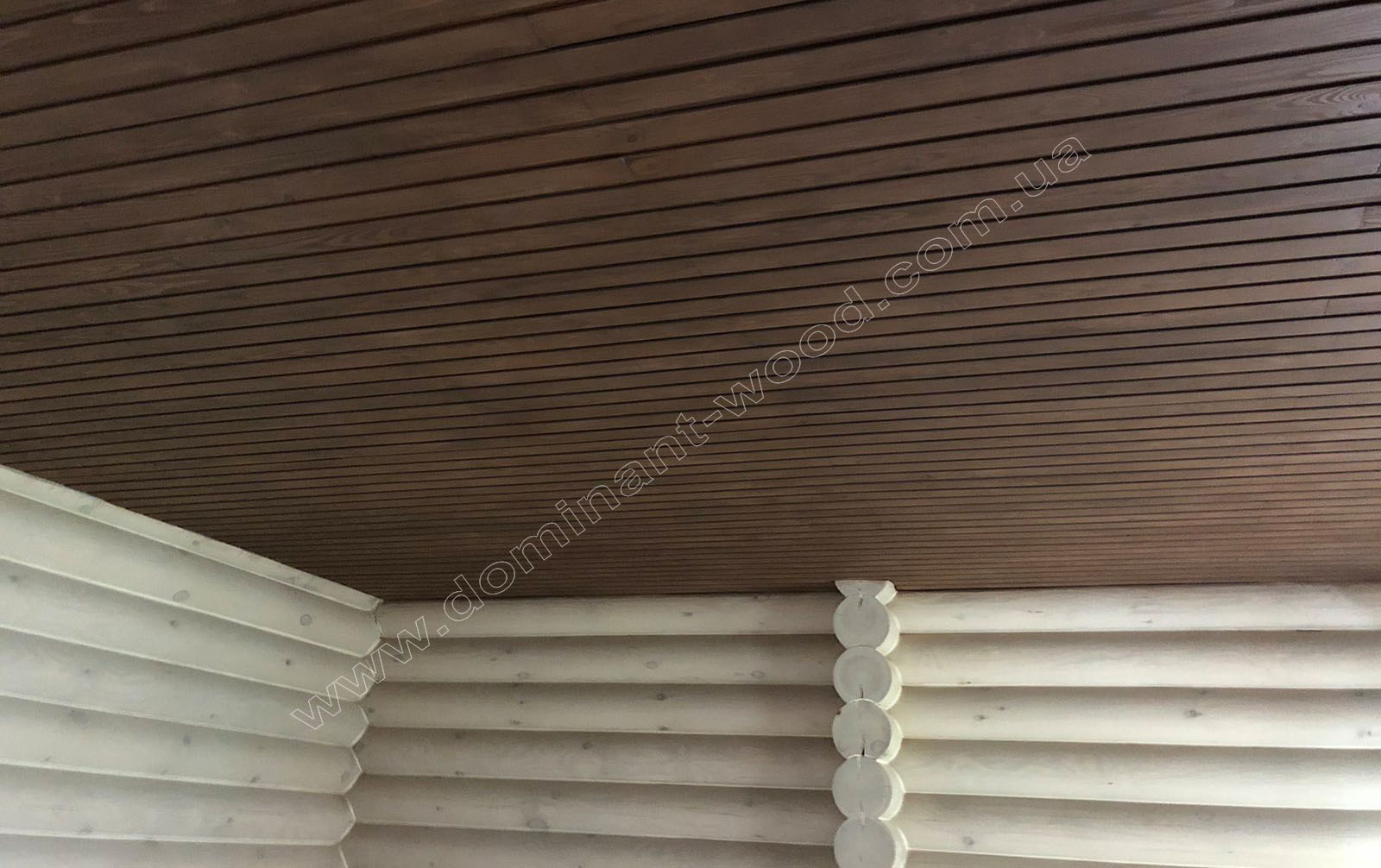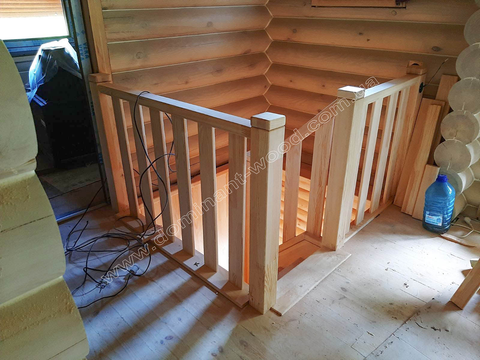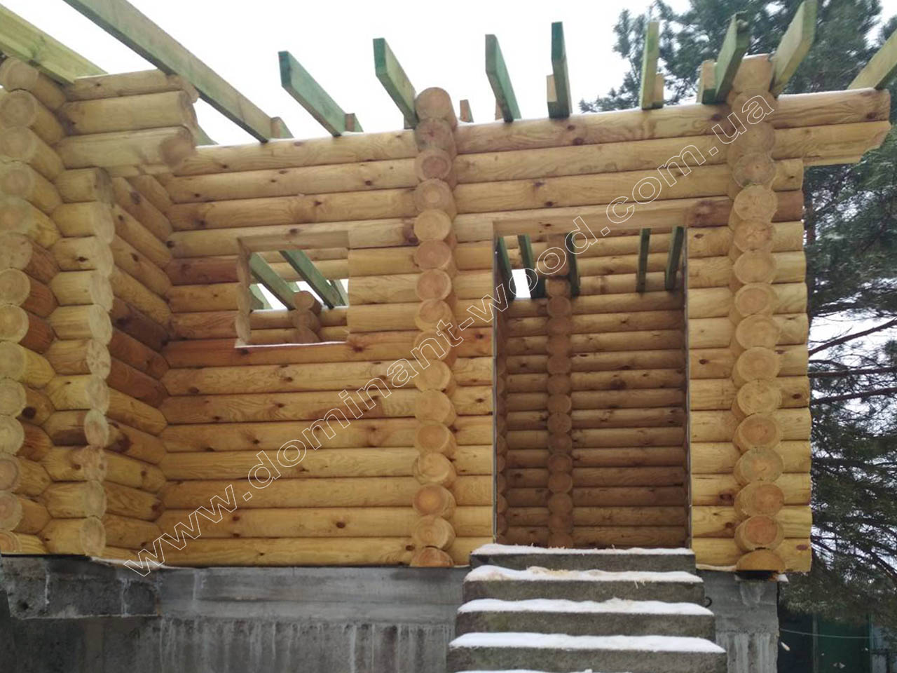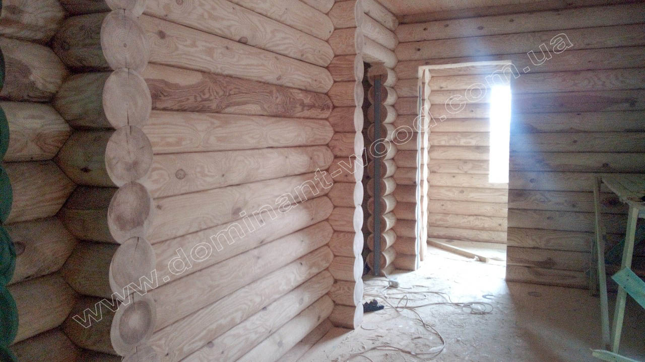У випадку з індивідуальним замовленням житлового будинку з колод у Вишгороді - як видно на фото робіт, господар побажав придбати у нас не тільки базовий комплект з монтажем, але й повністю замкнутий контур, тобто покрівлю, вікна, двері. До того ж наші фахівці виконували усі фінішні роботи по оздобленню будинка, а саме шліфування і фарбування внутрішнє і зовнішнє, герметизацію швів, підбивали стелі вагонкою, встановили водостічну систему з відливами. Наші підрядники, що займаються столярними роботами, виготовили сходи вниз до цокольного поверху. Таким чином, замовник отримав повний спектр робіт і послуг, на які розраховував, та, відповідно, поетапно розпланував свій бюджет.