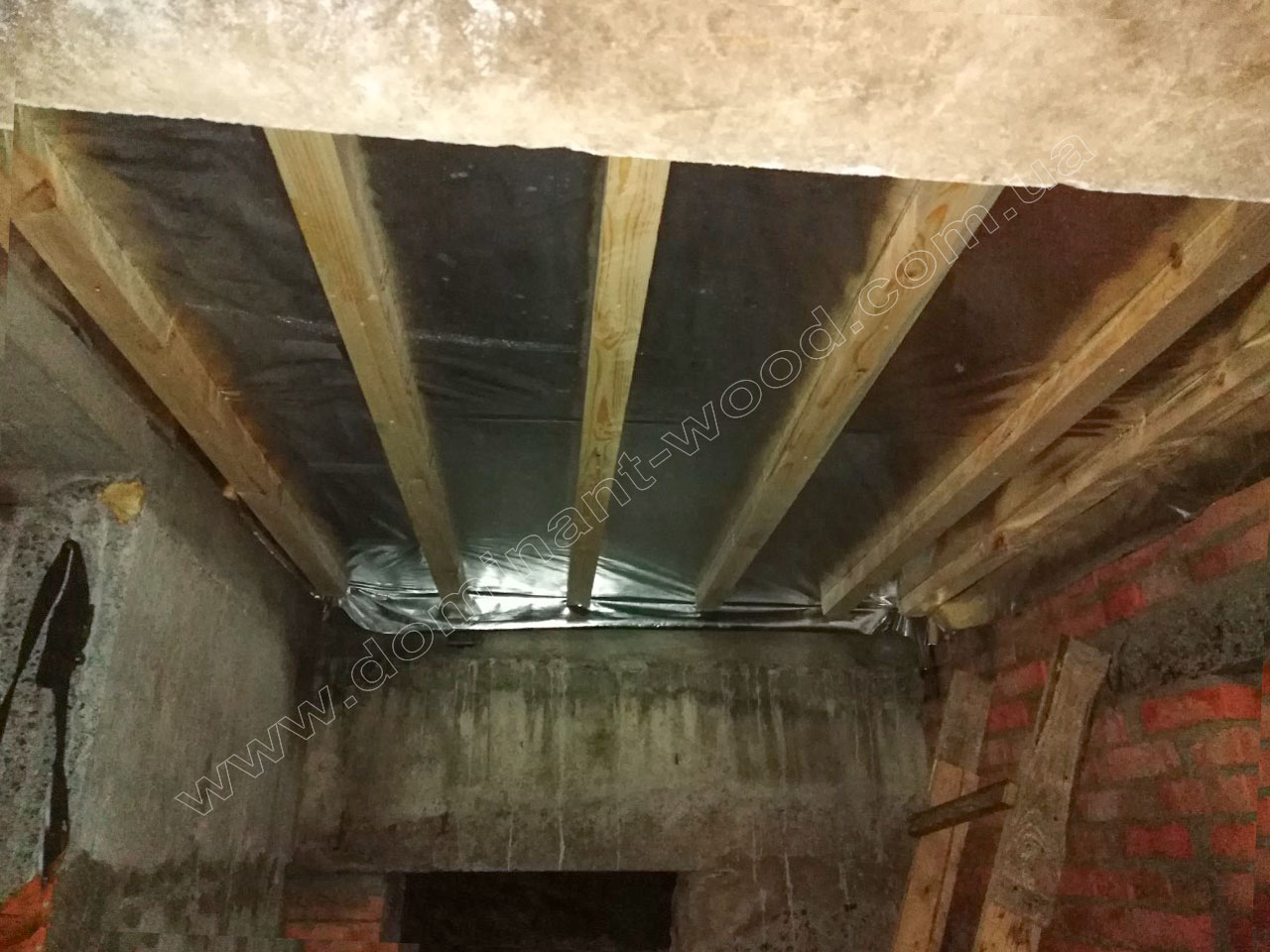 У замовника вже був зведений цокольний поверх, і ми адаптували проект під цю основу, перетворивши її на міцну й надійну частину конструкції. Цоколь може стати місцем для зберігання консервації, майстернею і заодно надійним сховищем. Цокольний поверх заглиблений в землю лише наполовину , він не є частиною фундаменту, а лише спирається на нього. На цокольному поверсі є невеликі вікна, і це означає, що він не буде служити в якості льоху, а використовується під житлові приміщення.