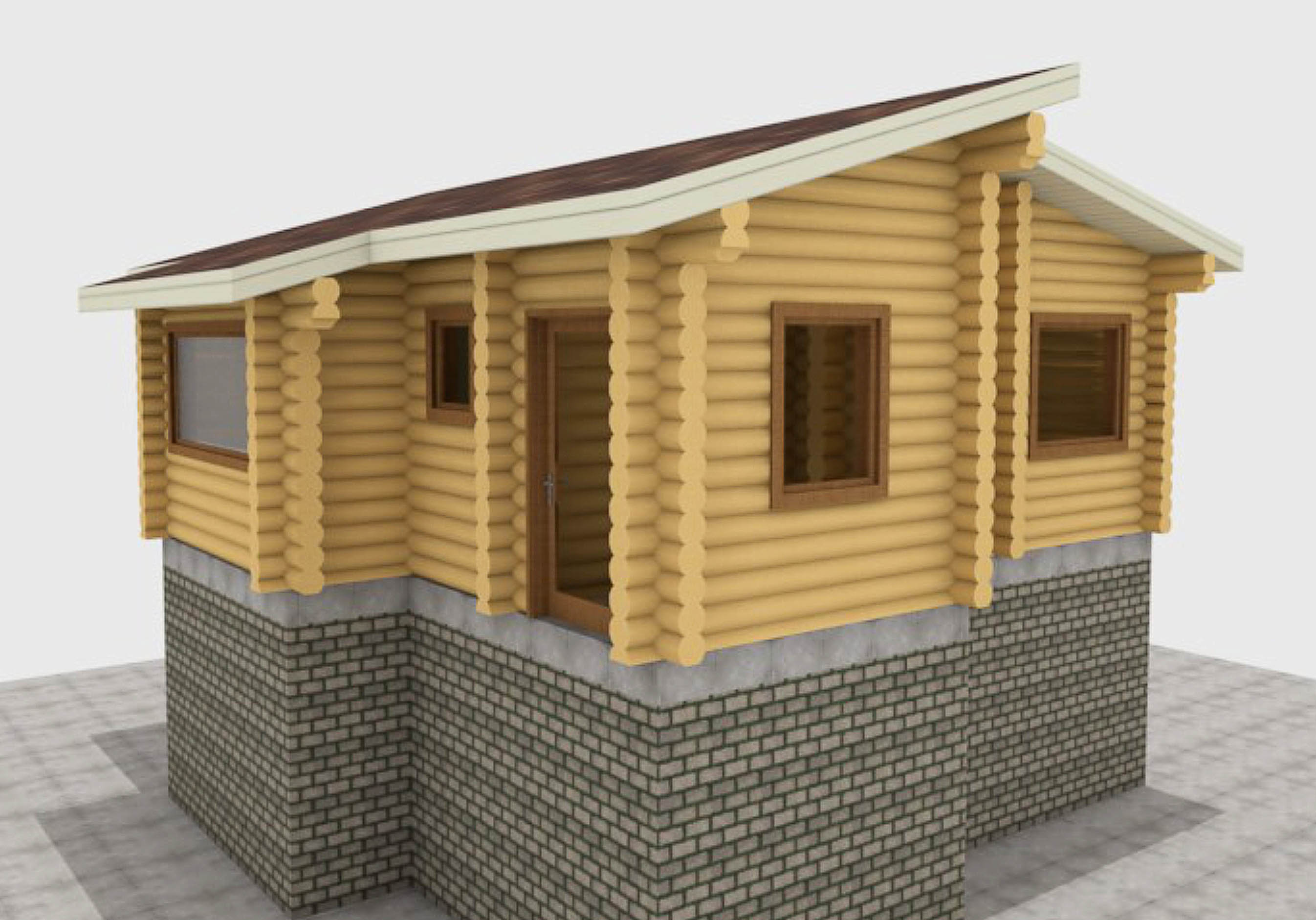 Дерев’яна частина будови складається з брусів максимального розміру нашого виробництва 220 мм. Такі масивні колоди слугують запорукою круглорічного комфорту в будиночку. Господар зможе тут жити досхочу, не дивлячись на компактність планування та дачне призначення споруди. Взимку тут буде довго зберігатися тепло, а влітку - прохолодна свіжість лісу. Низький коефіцієнт теплопровідності сосни сприяє чудовій теплоізоляції будівлі. Дерев’яний зруб, побудований з колод 220 мм не вимагає додаткового утеплення або спеціальної вентиляції.
