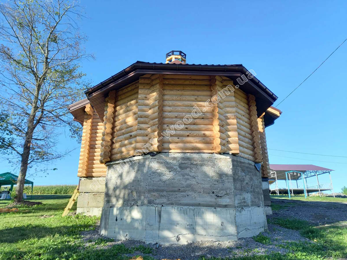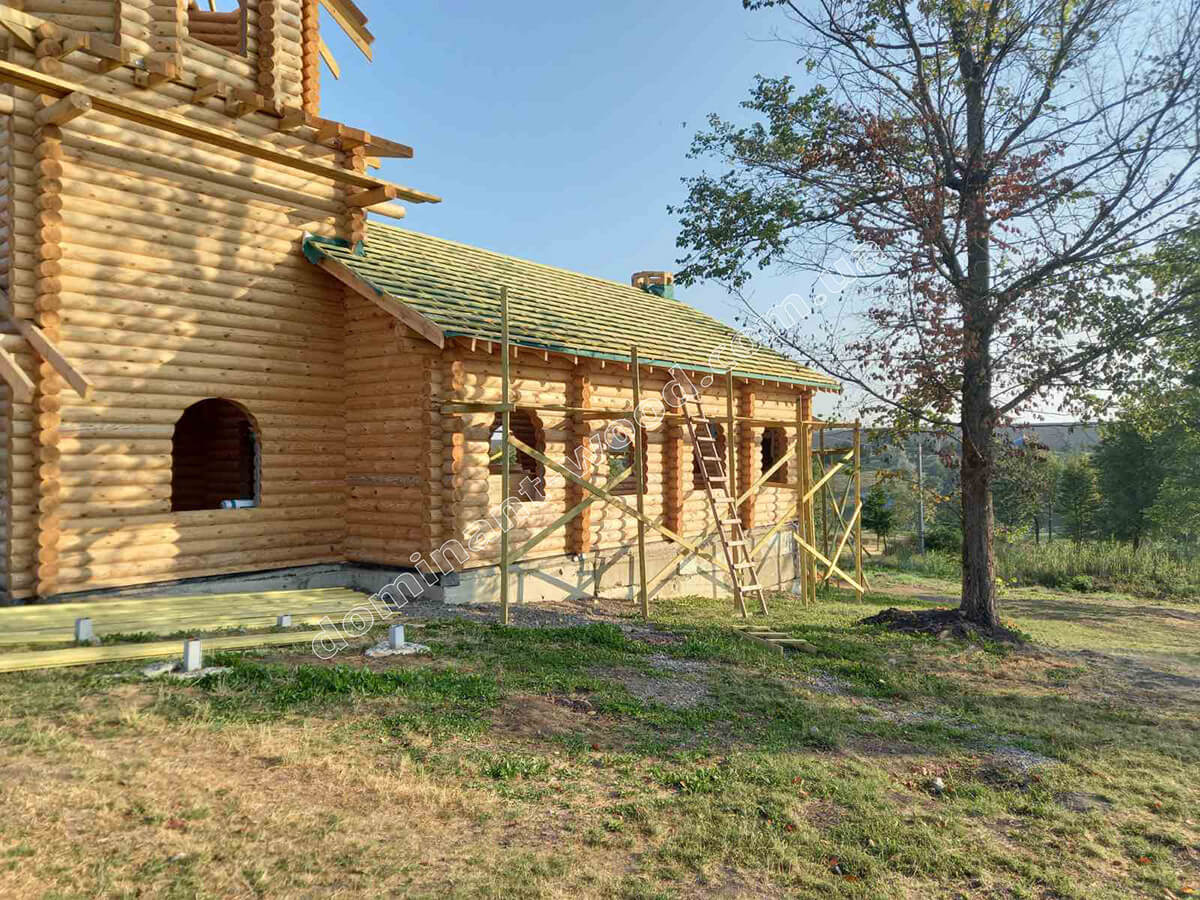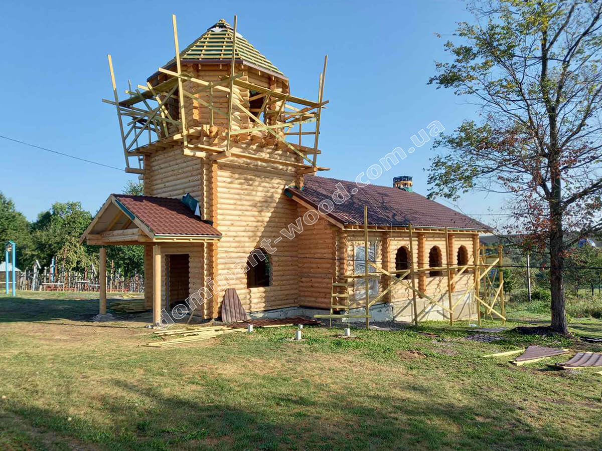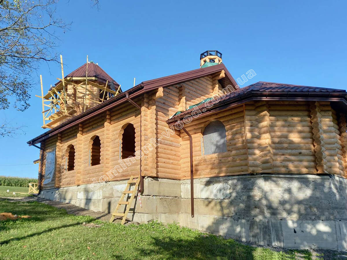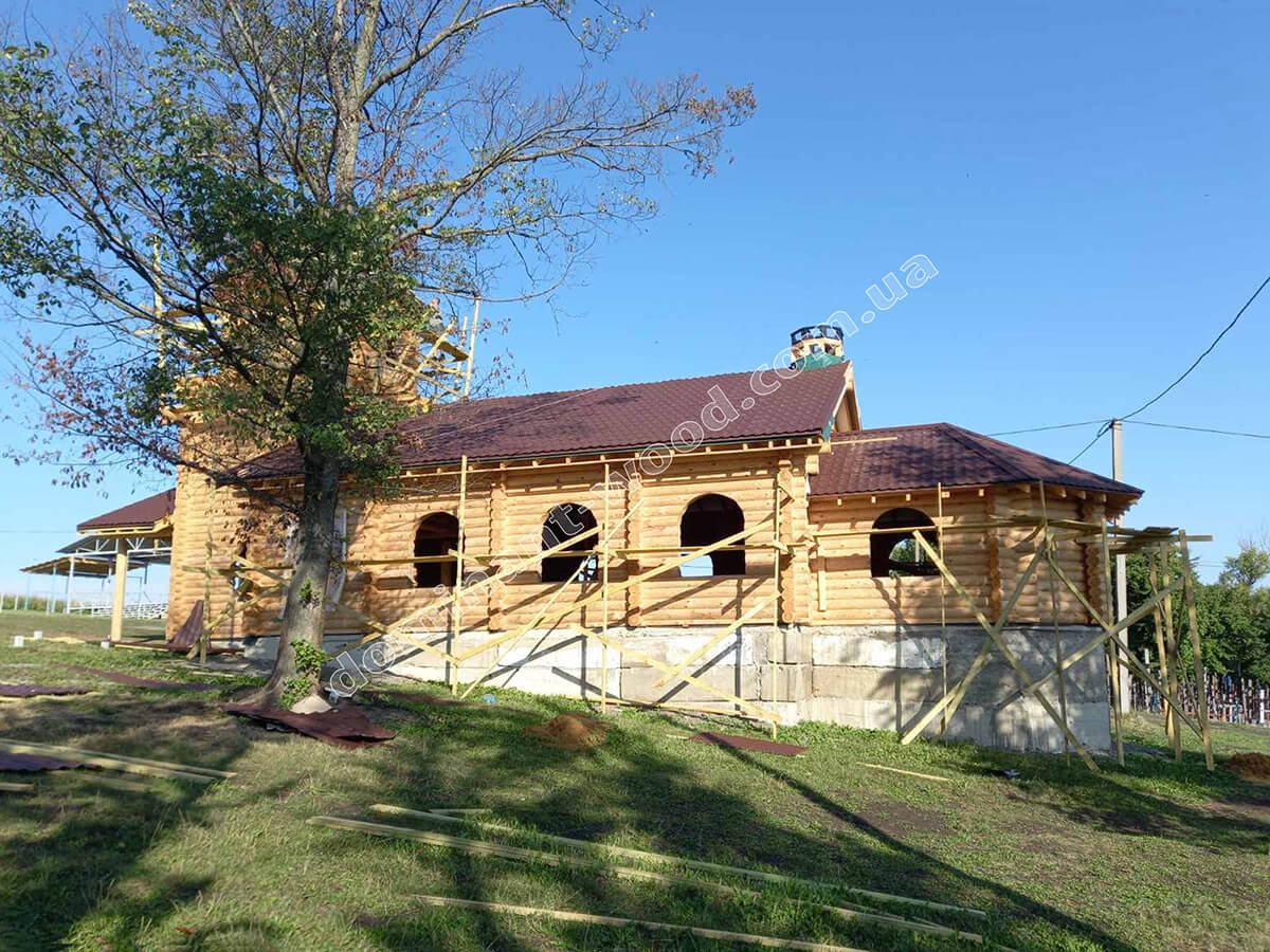 Для зведення стін церкви був підібраний матеріал природної вологості - оциліндрованна колода діаметром 220 мм. Це максимальний діаметр колод нашого виробництва, який буде виглядати добротно в храмовій будівлі і зробить її надійною і теплою навіть в холодну пору року.