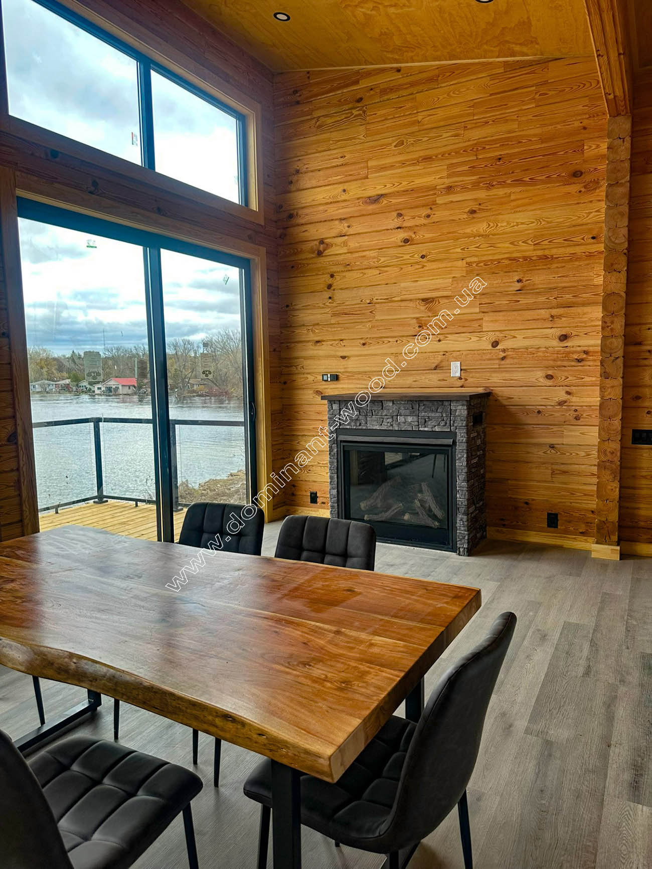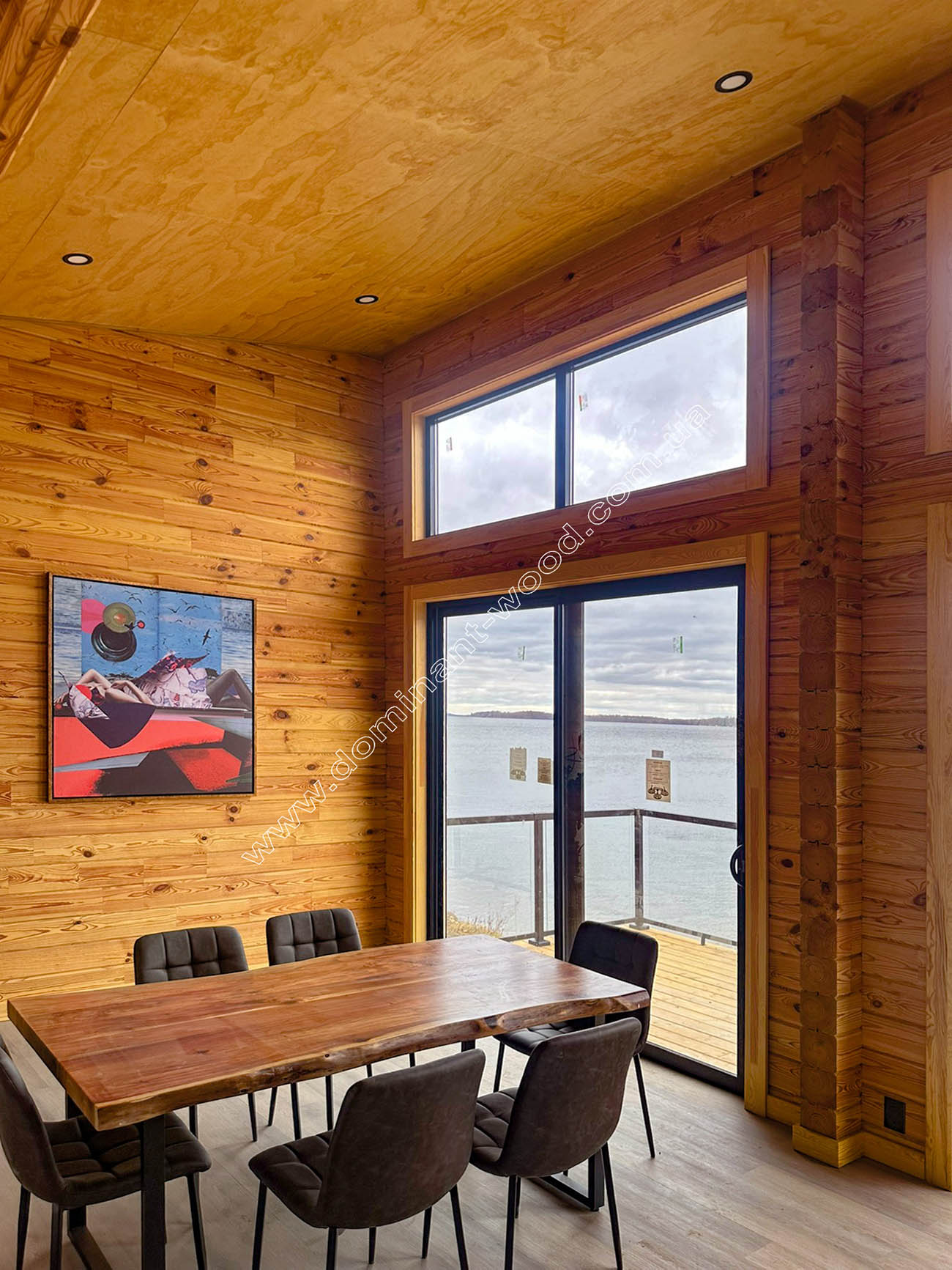 Максимум світла. Великі панорамні вікна відкривають краєвиди озера - це не просто естетика, це концепція «життя в злитті з природою». Ідея: не перешкоджати природі, а запросити її всередину.