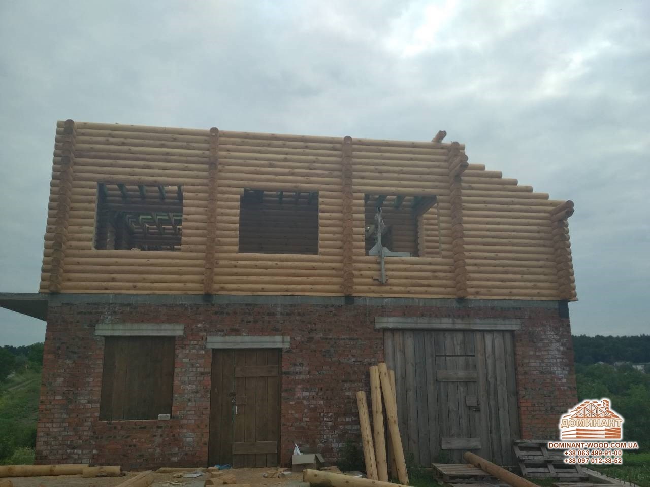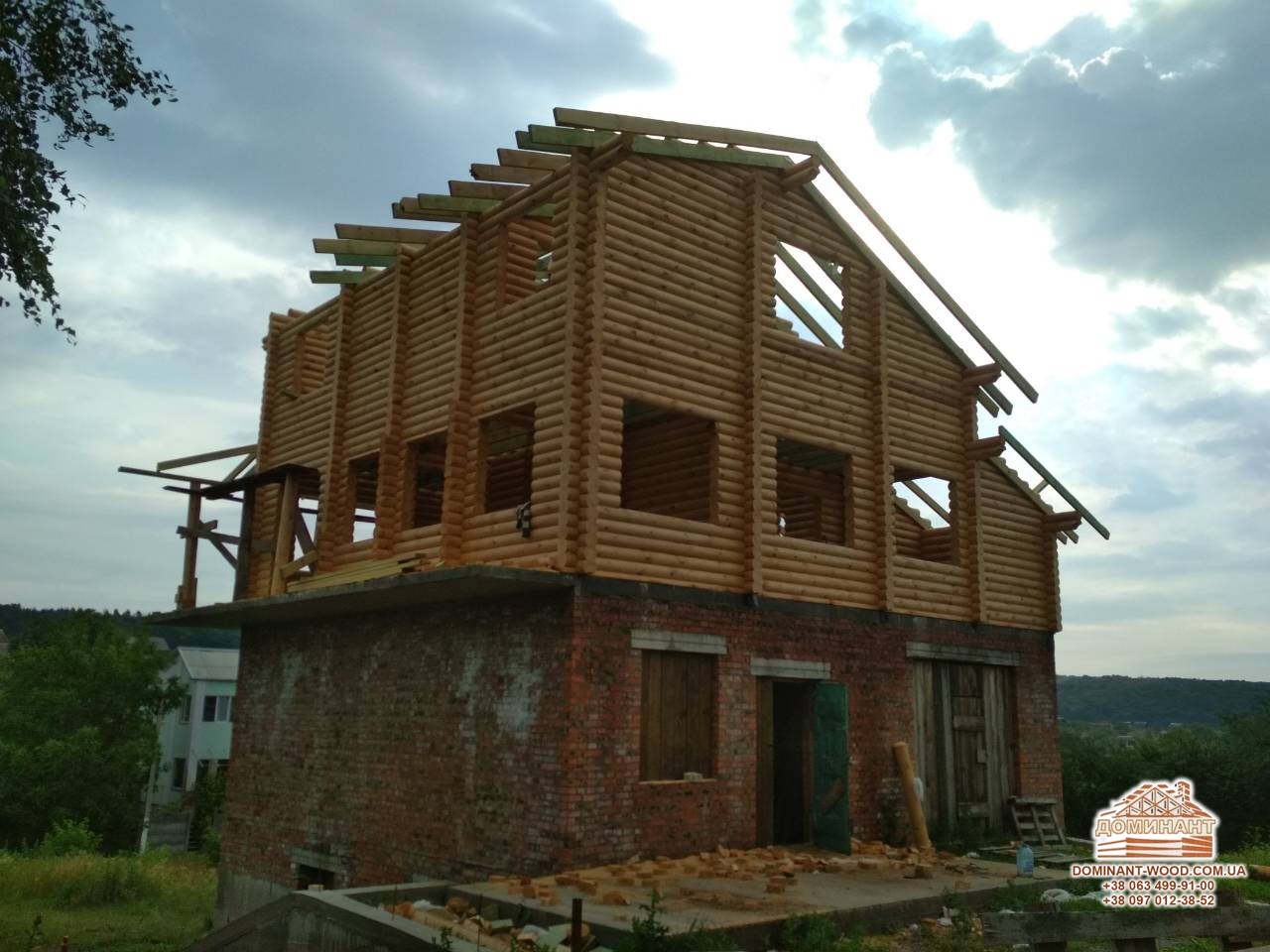 У компанію «Домінант» звернувся замовник з уже готовим проектом. А інтерес і новизна його полягала в тому, що у клієнта був повністю готовий фундамент і побудований перший поверх будинку з блоків. Ідея проекту полягала в тому, щоб добудувати на готовий поверх ще два поверхи з колод. Звичайно ж наші фахівці розглянули ідею клієнта, перевірили всі технологічні нюанси, розробили технічний проект з добудови дерев’яної конструкції на перший поверх з блоків і приступили до роботи.