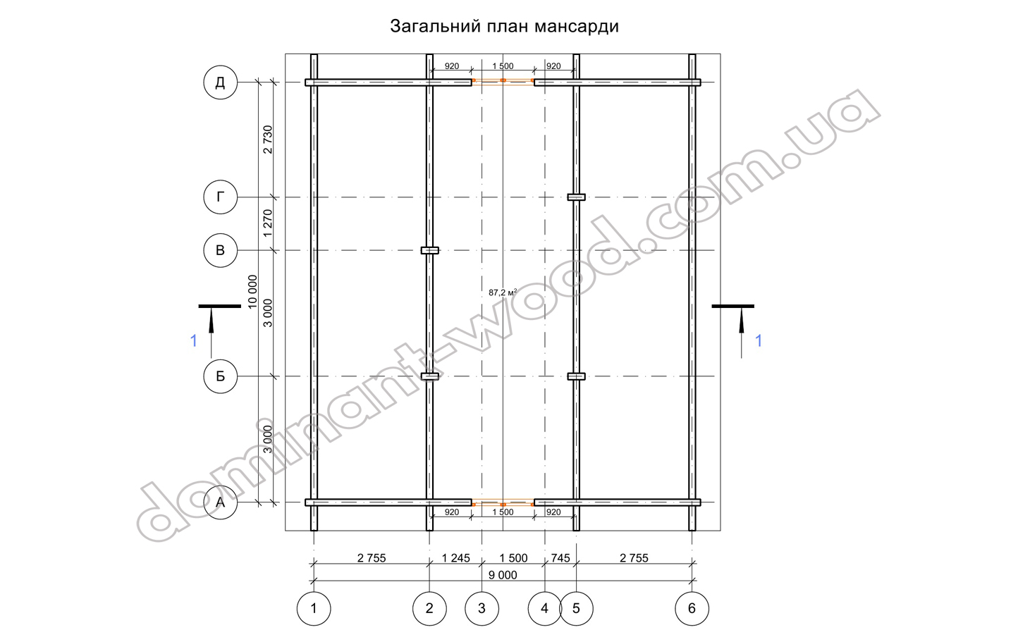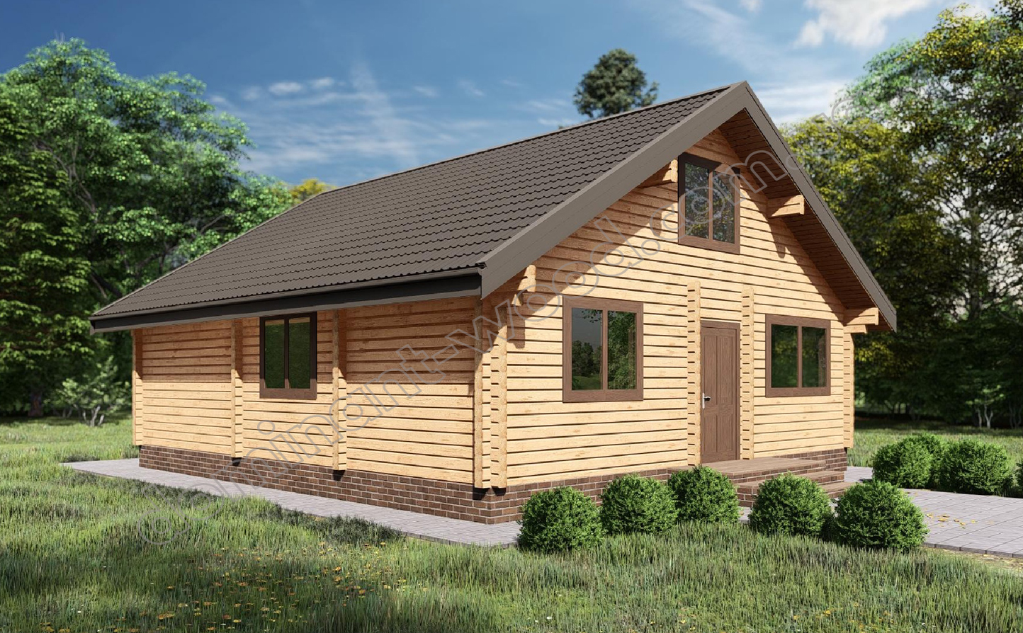 Будинок спроектований із сухого профільованого брусу 150×150 мм - класика, що поєднує міцність, екологічність і довговічність. Його габарити 9×10 метрів, також відразу привертає увагу доволі просторе горище 87,2 м². За ідеєю власника поки простір горища буде використовуватись лише під господарські потреби, але, можливо у перспективі він обладнає там житлову мансарду. На першому поверсі клієнт задумав для себе таке планування: