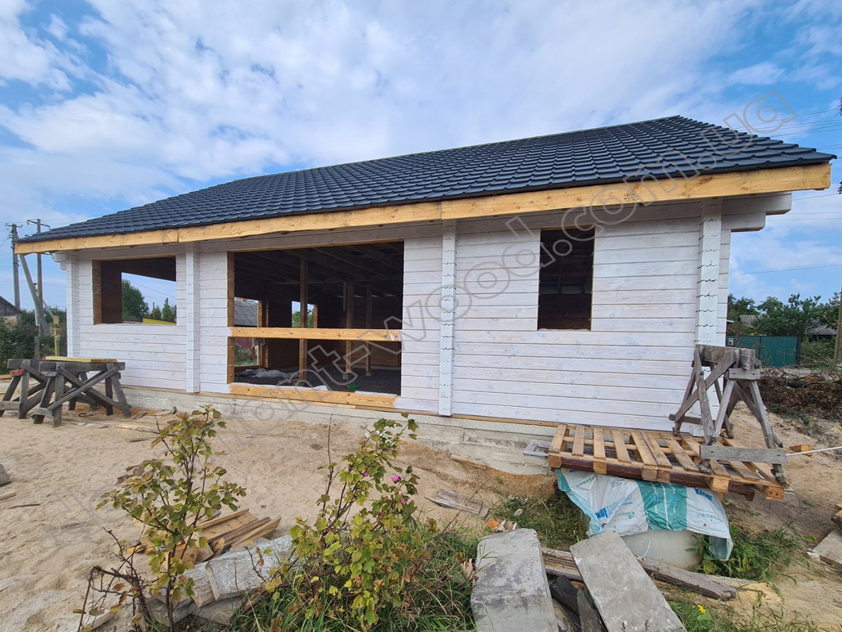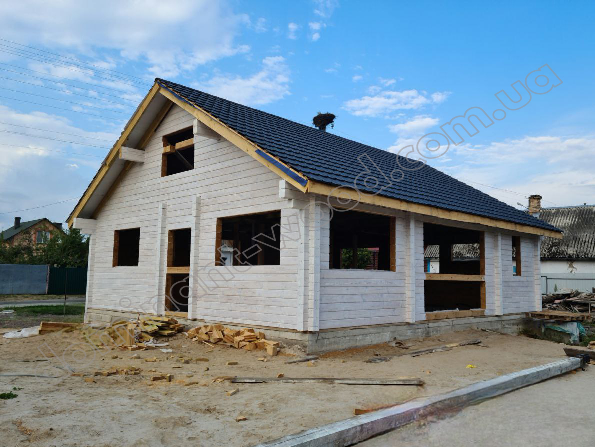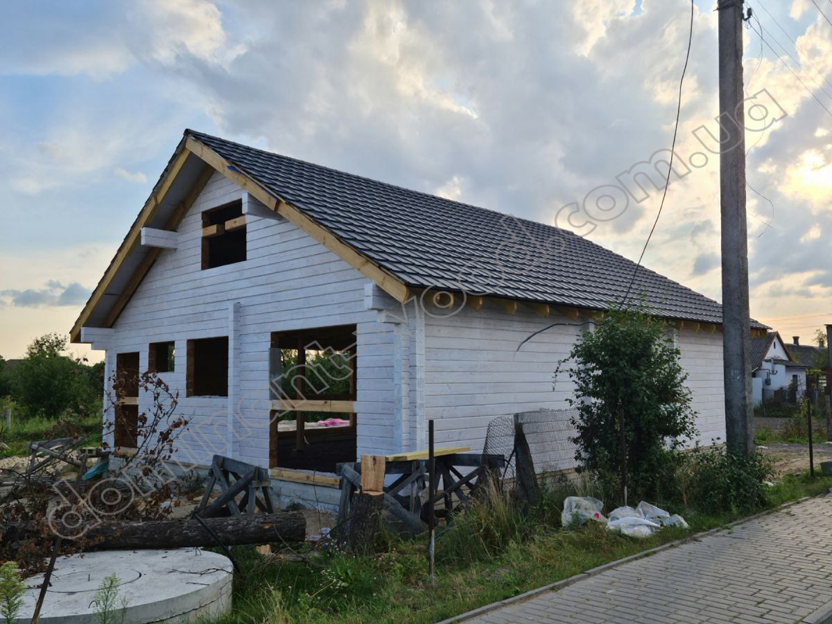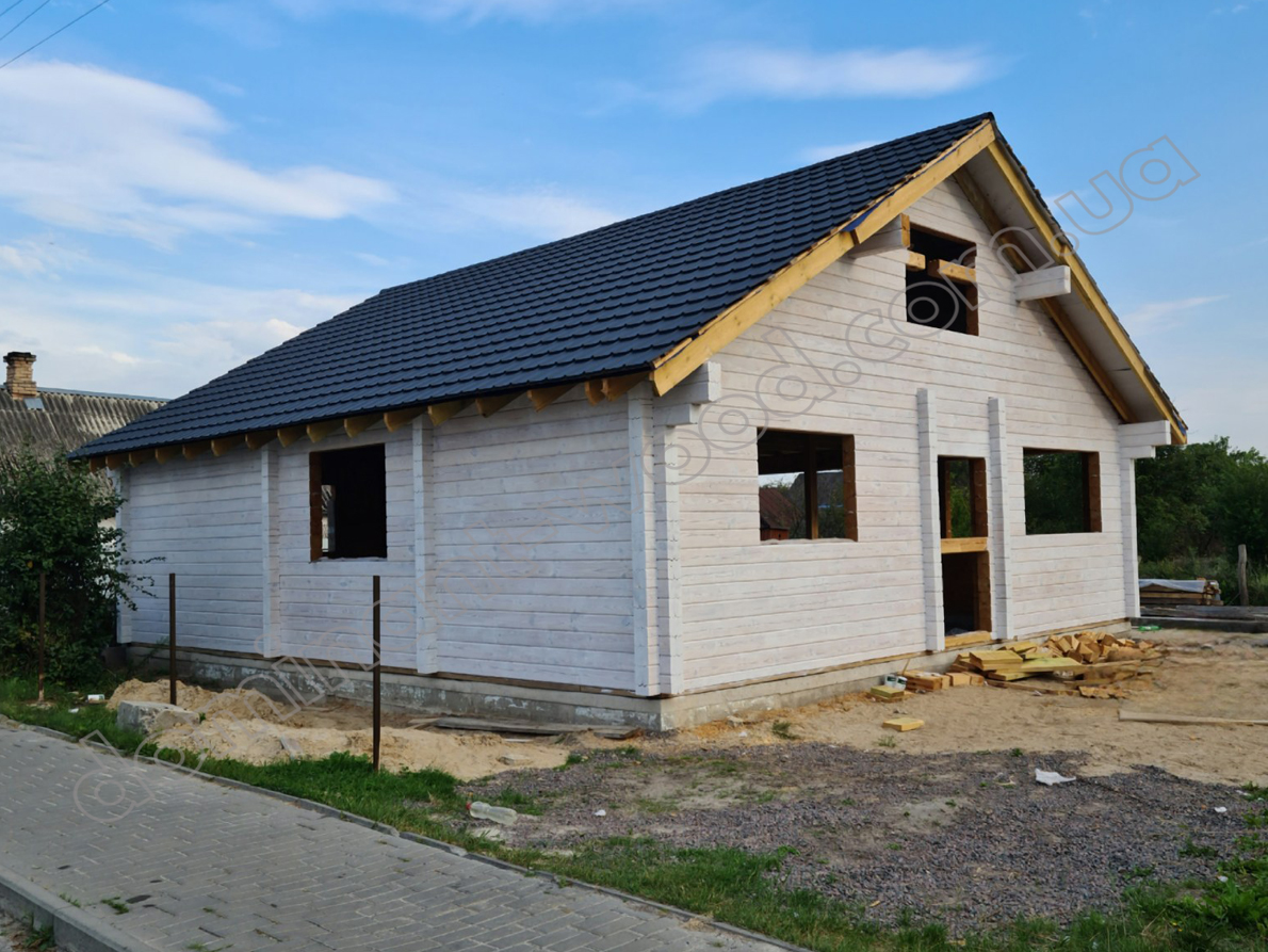 Архітектура будівлі проста, прямокутна. Та й форма даху класична - двосхила. Це не просто будинок - це ідея стабільності. Це креслення, яке одного дня стає твоїм життям. І знаєте, що найбільше вражає? Замовник приклав багато зусиль до будівництва своєї оселі. Він сам придумав планування і дизайн, який ми професійно втілили в технології будівництва з цільного, сухого, профільованого брусу прес-вакуумної сушки. Також клієнт придбав готовий комплект свого будинку з нашого заводу і самостійно склав цей комплект на своєму, заздалегідь підготовленому фундаменті. Після завершення монтажу власник сам підібрав колір, пофарбував і довів усе до дрібниць. Як бачите, господарю до смаку білий колір стін у поєднанні з дахом кольору темної морської хвилі. Ці свіжі, надихаючі відтінки радують око після фінішного завершення. Тепер цей будинок має свій характер з душею людини, яка не побоялася взятися власноруч за власну мрію.
