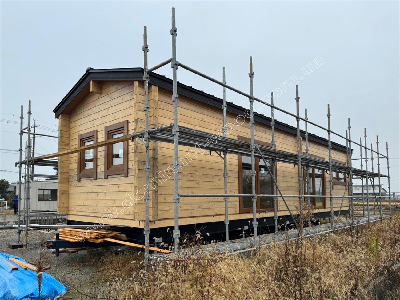 Компанія «Домінант» зазвичай експортує будівельні комплекти за кордон разом із послугою зі складання від наших майстрів. Але через росію, що підступно напала на нашу країну, українські чоловіки вже третій рік не залишають межі країни. Тому ми не їздили в Японію на монтаж виготовлених на нашому виробництві котеджів. Їх збирали місцеві майстри у відповідності з нашими технічними проектами по збірці дерев’яних конструкцій. Отже, сьогодні ми продаємо дерев'яні комплекти котеджів за кордон без монтажу поки триває війна і дуже сподіваємось на нашу перемогу над російськими ворогами, щоб поновити роботу будівельників «Домінант» також в інших країнах.