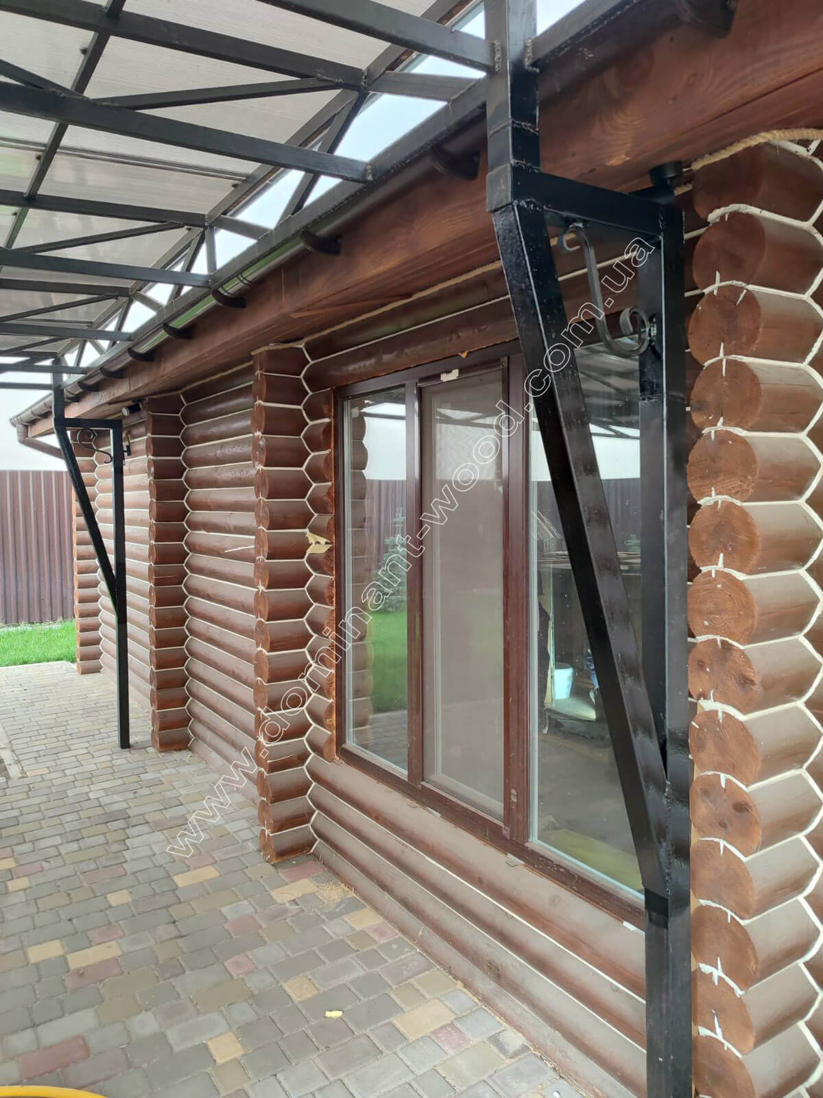 Фото робіт на сторінці з проектом демонструють інші варіанти фінішного дизайну цієї лазні. Відкривши їх, ви побачите наскільки по різному може виглядати один і той самий проект у готовому вигляді. Також на вигляд проекту впливають зміни в самому конструктиві. Як бачите, і цього разу головний фасад лазні відрізняється від звичайного. Це пояснюється змінами у проекті, які забажав замовник ще на етапі проектування.
