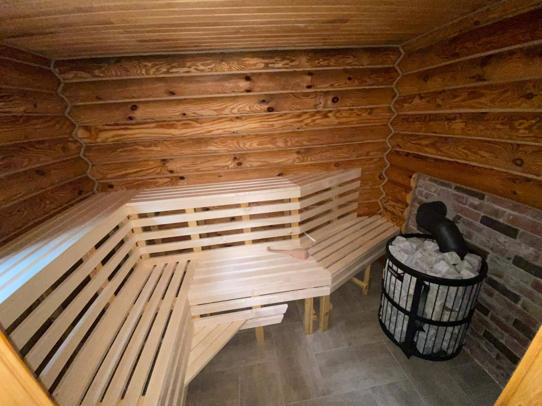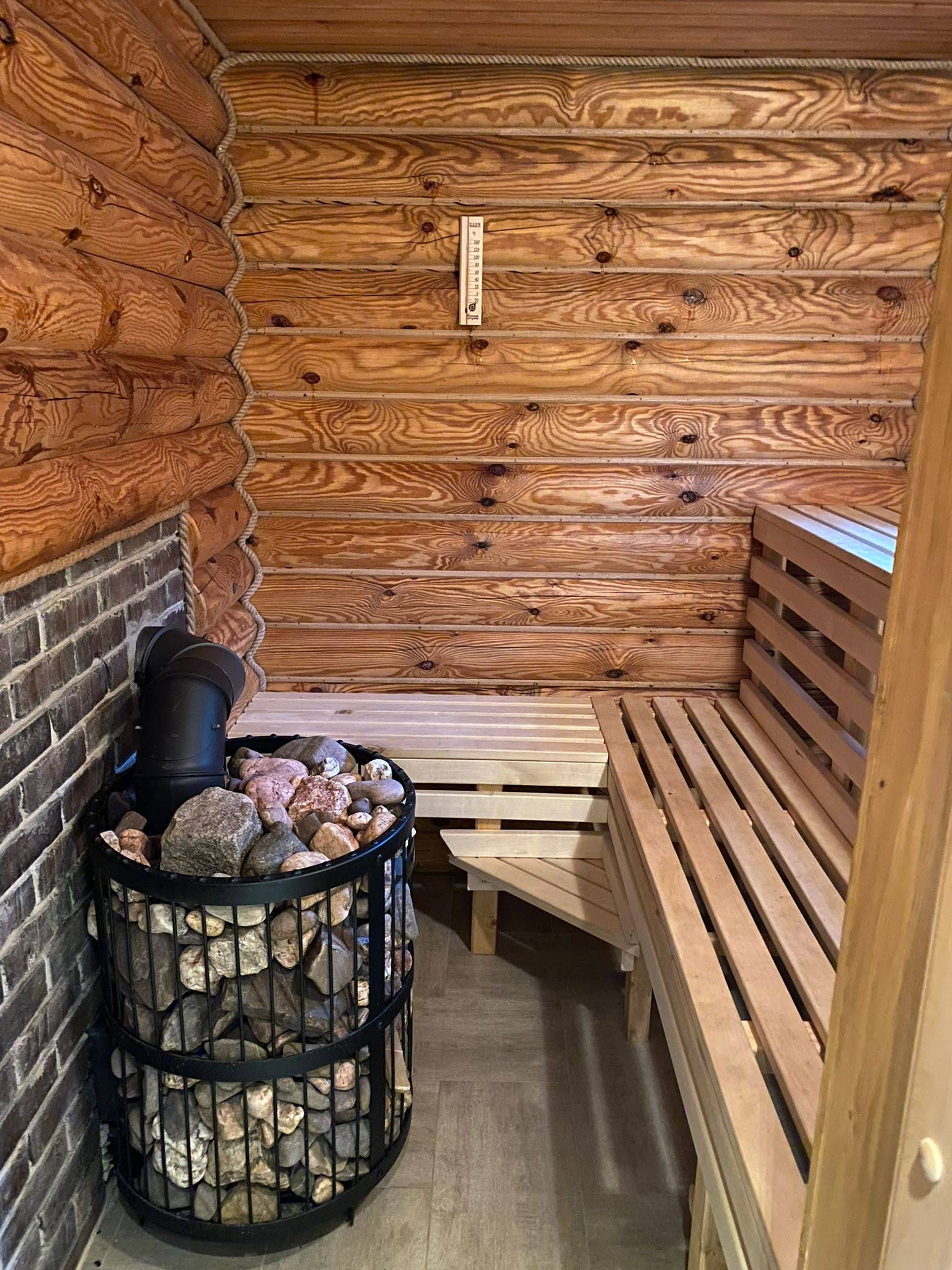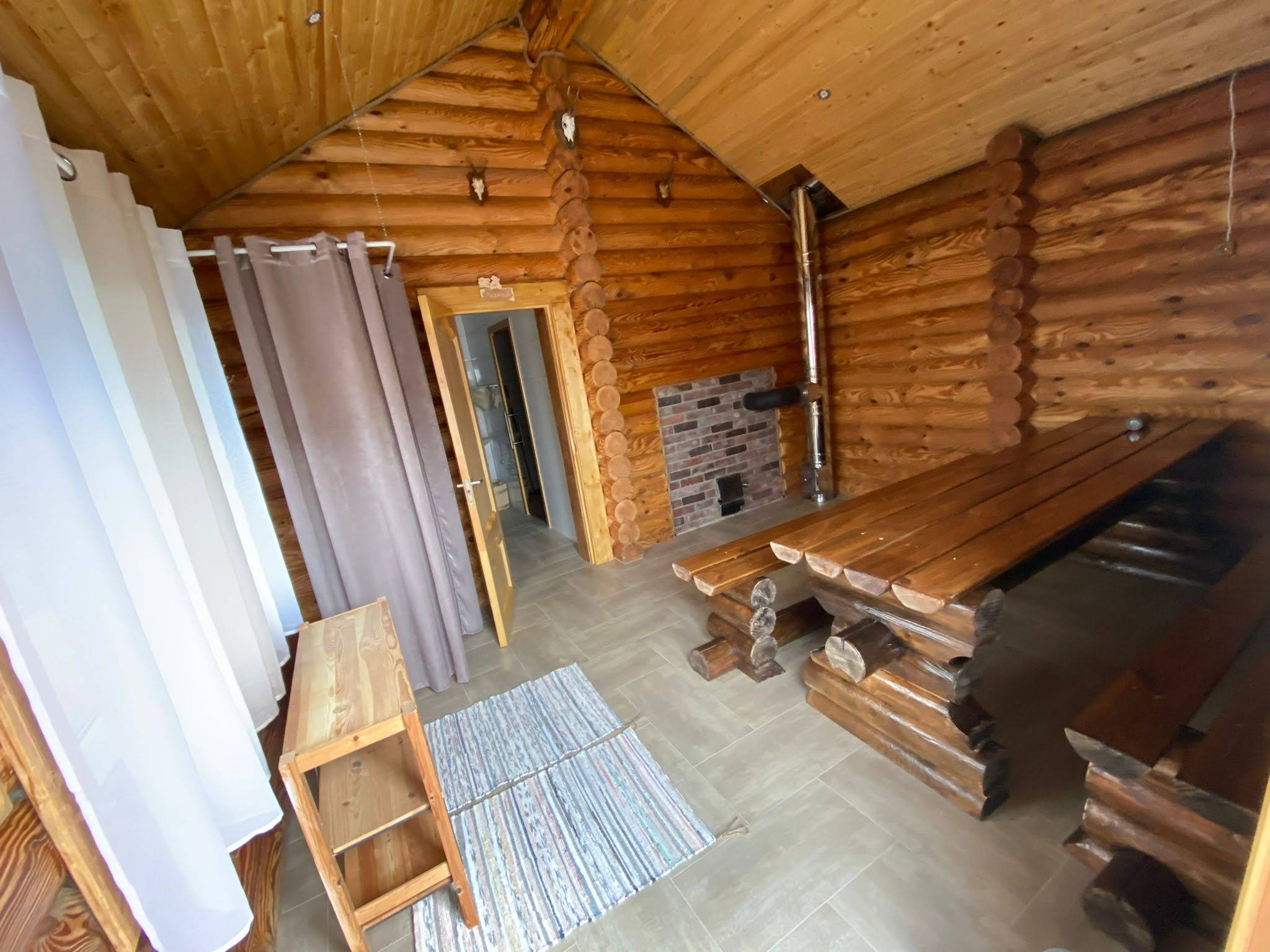 А щоб відпочинок був ще приємнішим, за бажанням клієнта ми доповнили комплекс розкішною будівлею – це двоповерховий ресторан зі зрубу. Тут можна розслабитися після лазні та насолодитися смачною їжею. Щоб усе виглядало гармонійно, ресторан зроблений з таких самих колод, що й лазні, товщиною 200 мм. Розміри будівлі - 11×5,8 м. Просторе, лаконічне приміщення правильної прямокутної форми, без мансарди - тут повноцінні два поверхи. Перший рівень із висотою стелі понад 3 м - це кухня, санвузол, приміщення для персоналу та головний зал для гостей. На другому поверсі - ще два просторих зали по 30 м². Замовник хотів, щоб у приміщенні відчувався простір, і ми подбали про те, щоб він отримав саме те, на що розраховував.