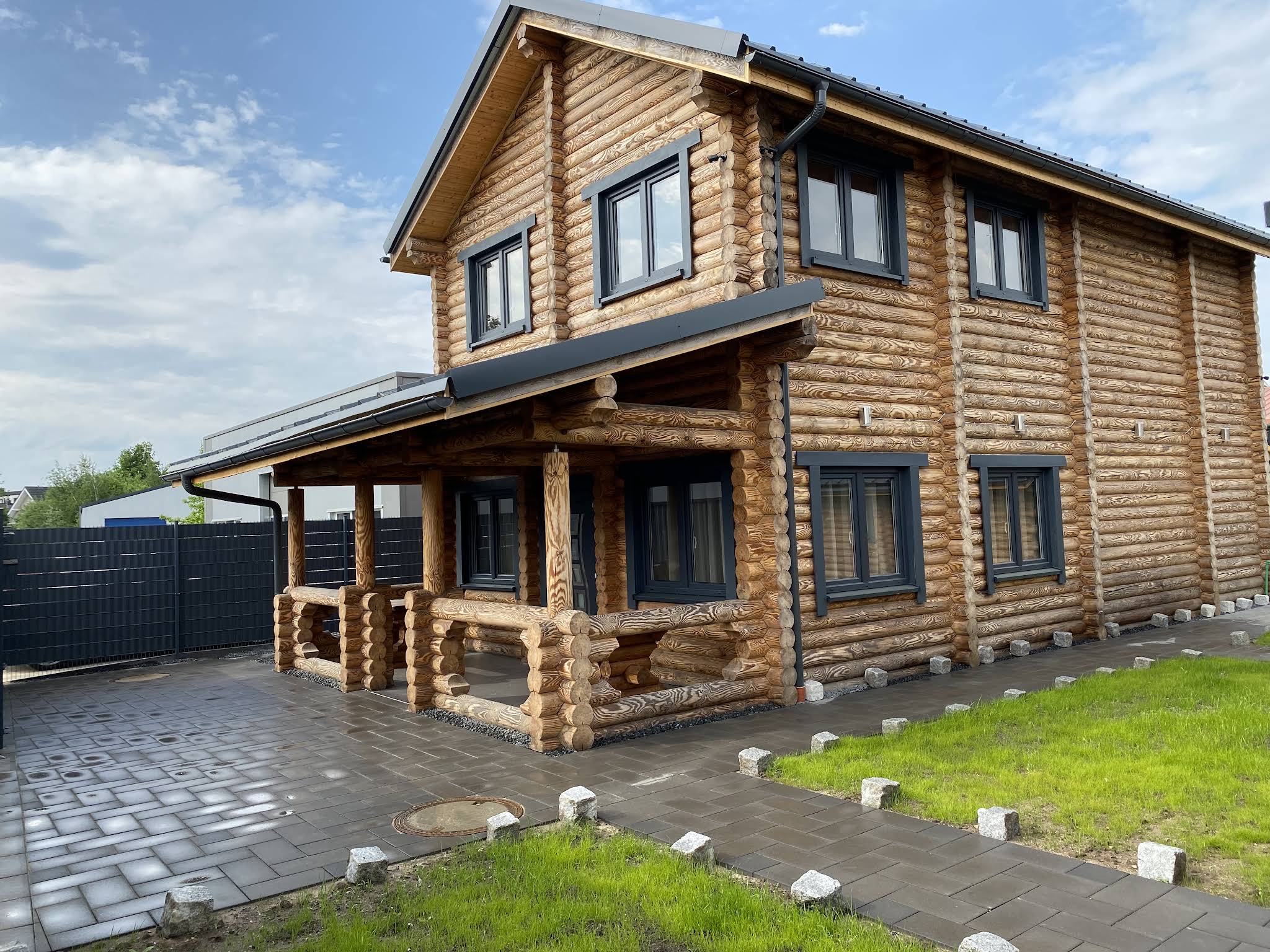 Наші клієнти цінують індивідуальний підхід. Тож замовник особисто приїхав до нас на виробництво аби детально обговорити концепцію комплексу. Його побажання стосувалися як зовнішнього вигляду будівель, так і їхнього внутрішнього облаштування. Враховуючи ці деталі, наш архітектор створив проекти чотирьох атмосферних бань з колоди діаметром 200 мм. Найбільша з лазень має розміри 6,8×4,5 м і загальну площу 27 м². Усередині достатньо місця для парної з душовою розмірами по 6 м² та затишної кімнати відпочинку площею 15 м². Виходячи з багатого досвіду будівництва в різних країнах, ми дізнались, що за кордоном існують обмеження на висоту та площу приватних будівель, і Німеччина - не виняток. Ось чому ми завжди адаптуємо проекти під місцеві норми. Наприклад, висота стін у цій лазні склала - 2,538 м, а разом із дахом будівля сягає 4,2 м.