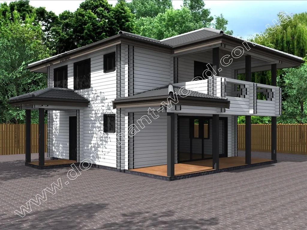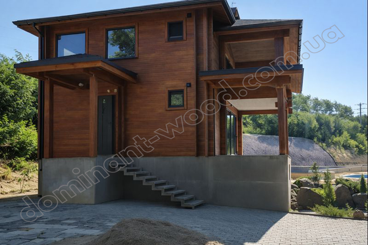 Будівництво дерев’яного будинку з подвійного брусу за проєктом «Маргед»