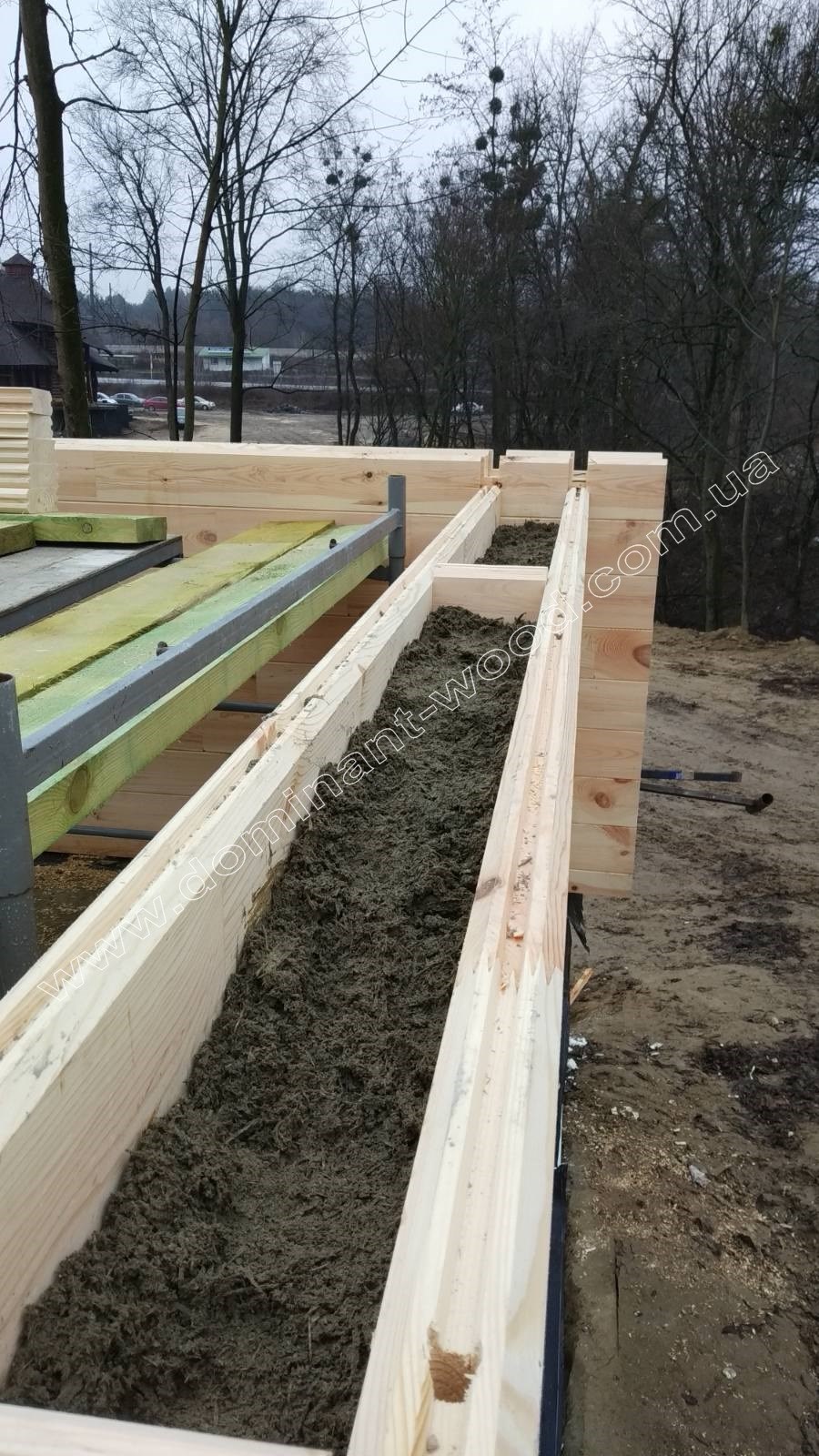Зведення будинку з подвійного брусу з арболітом має свою технологічну особливість. Спочатку монтується один метр подвійної дерев’яної конструкції, після чого внутрішній простір заповнюється арболітовою сумішшю, далі потрібно почекати, щоб вона застигла. Потім споруджують наступний метр. У такий спосіб комфортабельний, теплий будинок зводиться, і після готовності найкраще підходить для постійного проживання. Проєкт «Маргед» ми збудували неподалік від міста Житомир. Господарі вже кілька років насолоджуються своїм теплим будинком. Показуємо на фото з локації будівництва - як починався монтаж, і як зараз виглядає готовий будинок. Якщо вам до вподоби проєкт «Маргед», і ви б хотіли розглянути ще варіанти проєктів з подвійного брусу - відкривайте наш каталог і обирайте вподобаний будиночок.