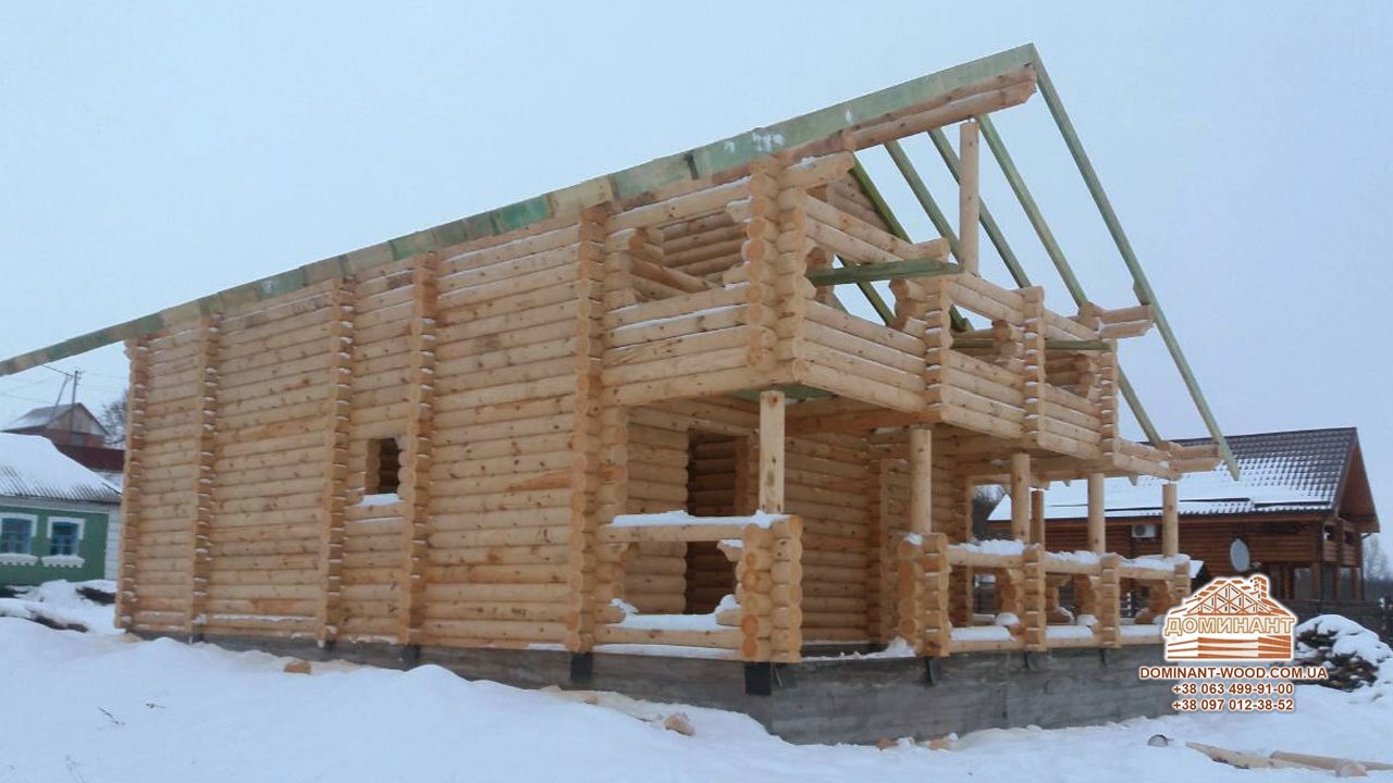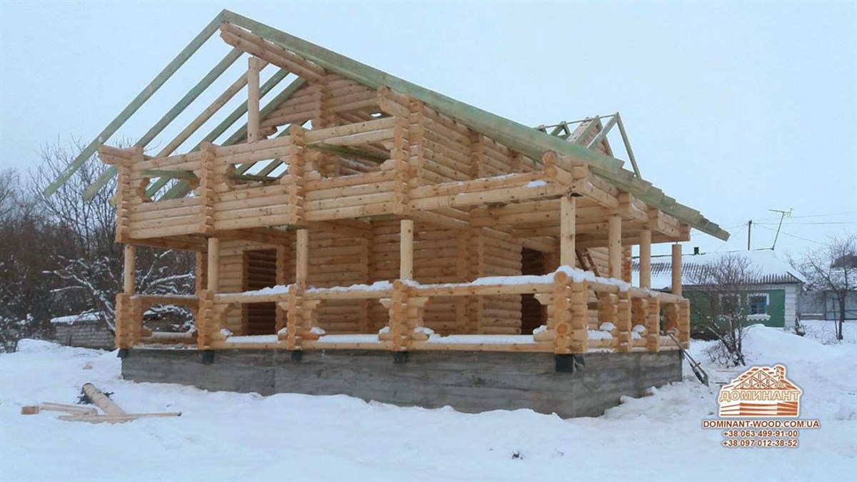 На вулиці мінусова температура і завірюха ... Хочеться ялинку, мандаринів і глінтвейн біля каміна в стінах теплого дерев'яного будинку. Поки ваша уява малює приємні новорічні картини, компанія «Домінант» втілює їх у життя! На даний момент наші фахівці займаються будівництвом двоповерхового дерев'яного будинку за проектом «Міладіна» із оциліндрованих колод діаметром 200 мм.