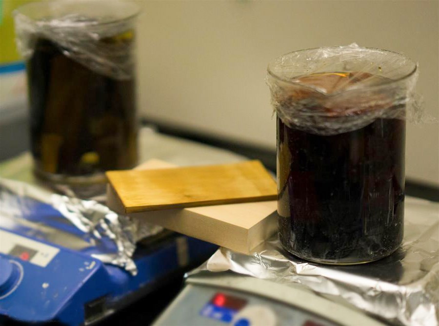 - 1. Спершу деревина поміщається в хімічний розчин, внаслідок чого буде видалено лігнін. Так ми отримуємо менш пористе і більш гнучке дерево.