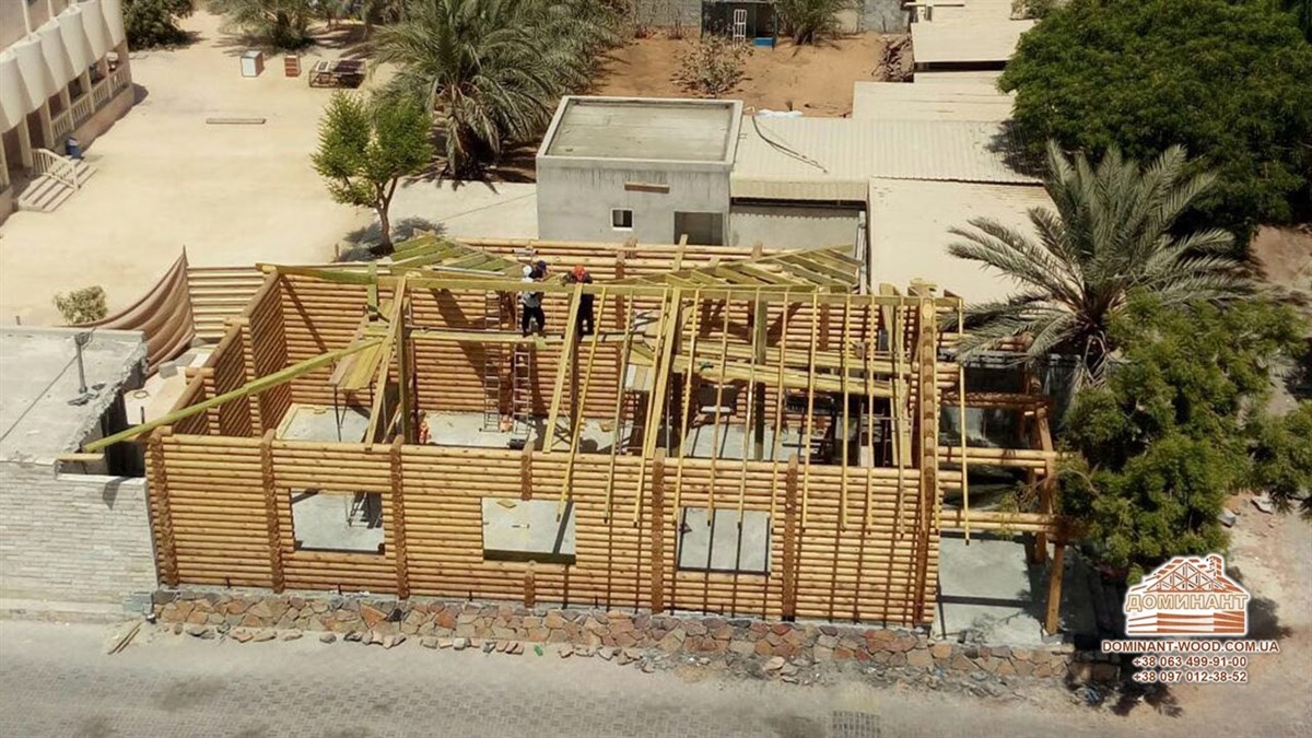 Ми пишаємось, що стали однією з компаній, що поставили екзотичний для Еміратів колодчастий, сосновий зруб в м. Аджман, незважаючи на специфіку спекотного клімату, через який колоди екстремально всихались прямо на будівельному майданчику. Завдяки засобу для консервування торців вдалось стабілізувати відсоток вологості всередині брусів і скласти зруб, навіть за умов, коли можливість працювати була тільки вночі. Тому що вдень температури досягали понад +40 °C. Особливої уваги потребували торці і зрізи колод, оскільки через них волога просочується майже в 50 разів швидше, ніж через інші частини колод, що призводить до деформації зрубу. Тому, щоб уберегти колоди від деформації або законсервувати зруб на тривалий час, перш за все, обробляються торці колод. Для установки базової комплектації дерев’яного павільону в Емірати відряджався фахівець з нашого підприємства, який здійснював шеф-монтаж з місцевими будівельниками.