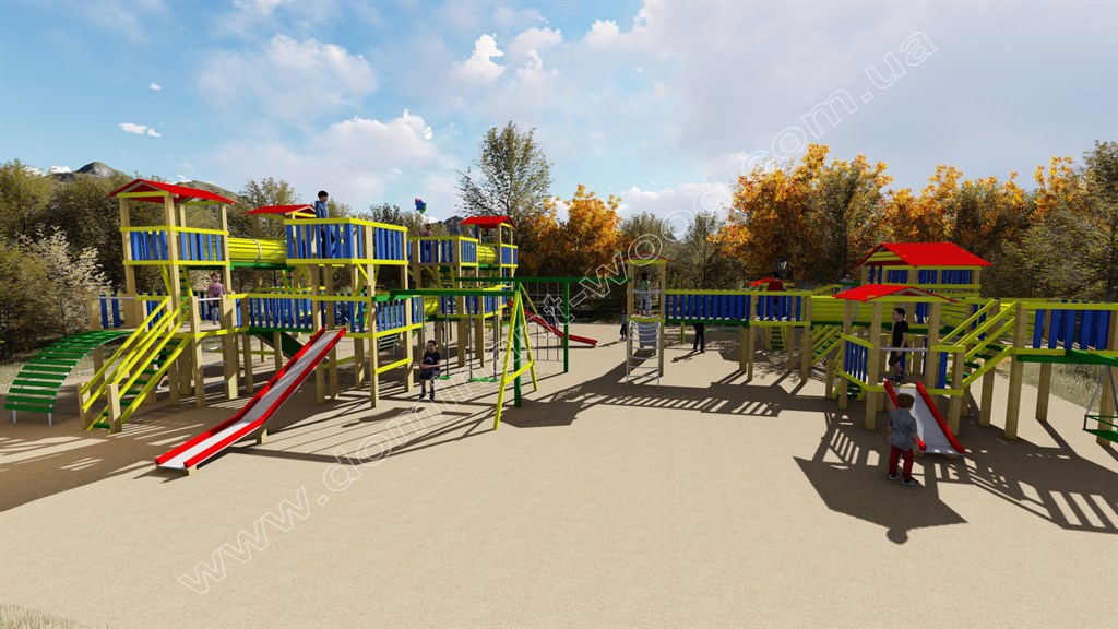 Наші фахівці розробляють дитячі майданчики з сухого бруса під інтереси дитини і її вік, але в першу чергу ми дбаємо про те, щоб гірки і гойдалки були безпечними і надійними. Серед наших проектів дитячих дерев'яних майданчиків, ви побачите, що оснащення ігрового простору може бути абсолютно різним. Дітям особливо подобається, якщо майданчик виконаний в стилі якогось казкового містечка з башточками, оглядовими майданчиками і канатними доріжками, наприклад, як наш Комплекс гойдалок і гірок 12,2 на 17,7 м для дитячого майданчика - «Смарагдове місто».
